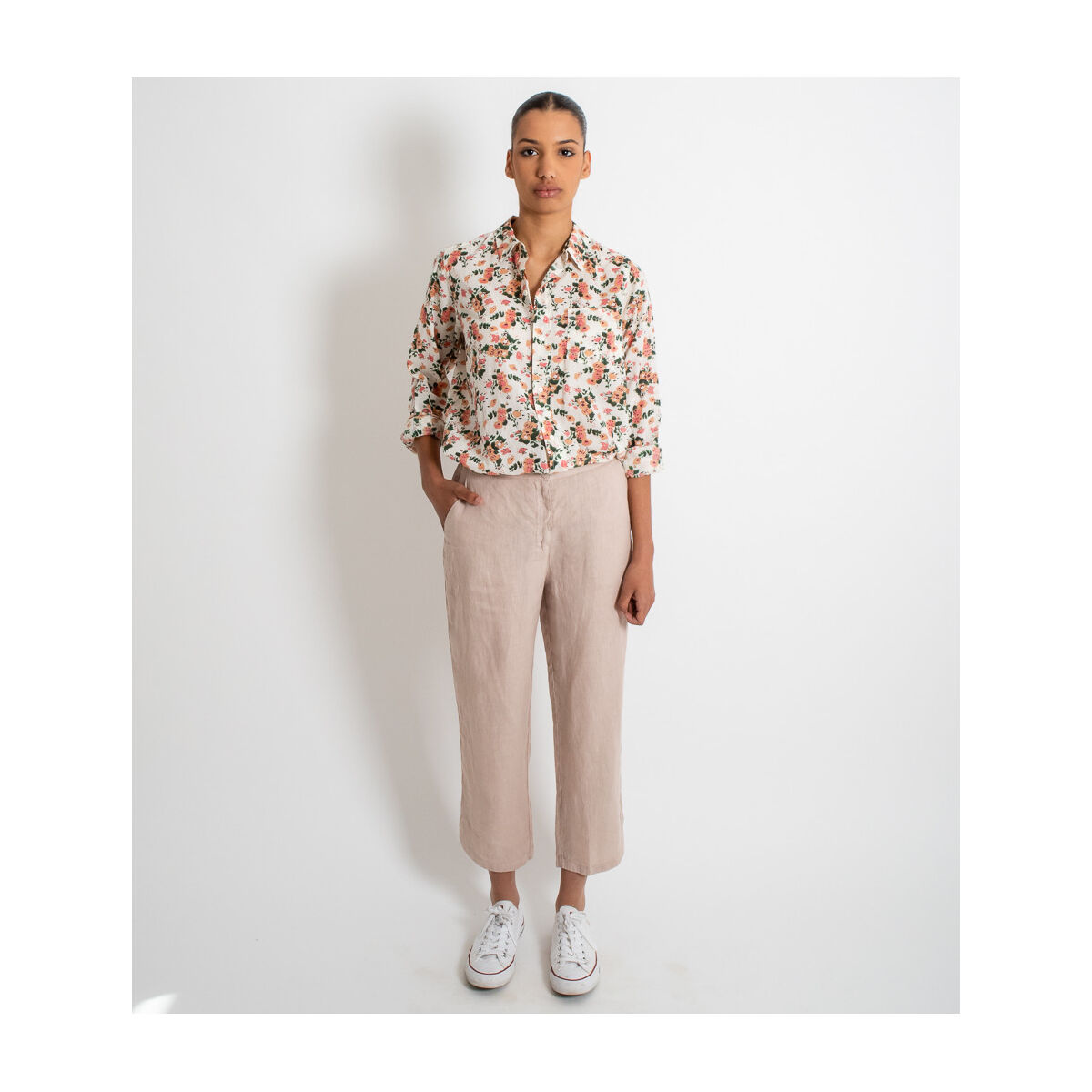 Chemise manches longues Imprimé Fleuri BONNIE Ecru - AMOUR SHIRTS