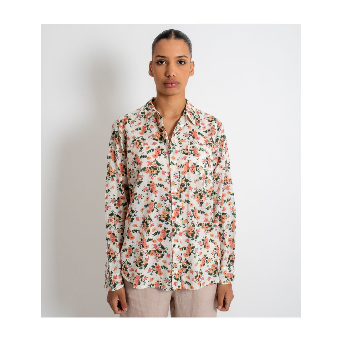 Chemise manches longues avec bel imprimé fleuri. On aime la sensation du voile de coton.