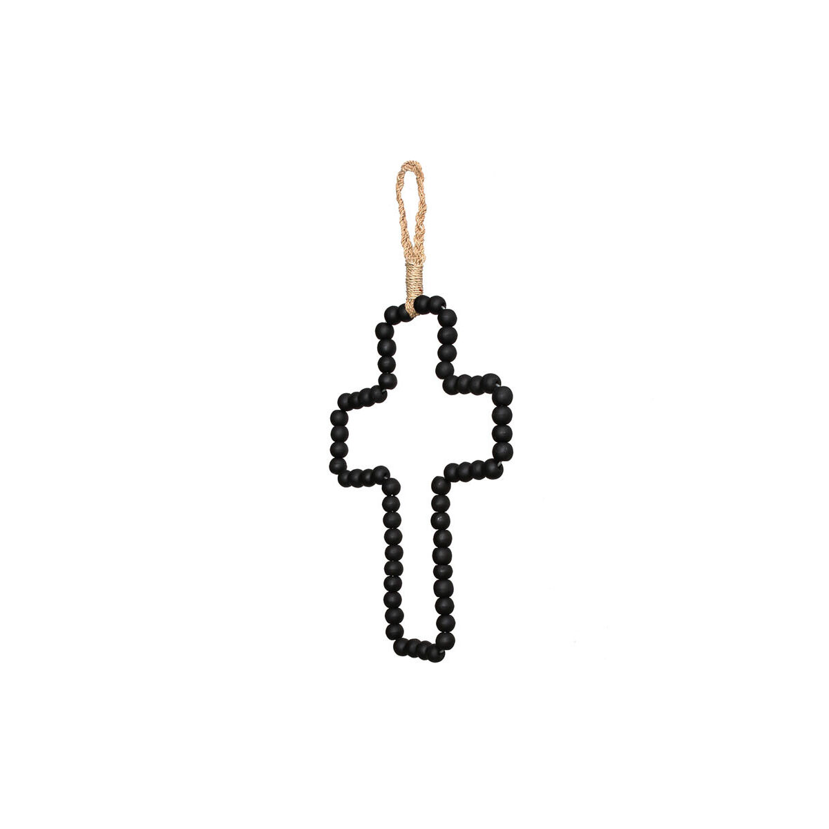 Que vous soyez religieux ou non, la croix est toujours un beau symbole. Celui-ci est fait à la main avec des perles de bois noir. Accrochez cette croix décorative où bon vous semble. Laissez-vous inspirer par la décoration de votre maison. Existe aussi en coloris naturel.