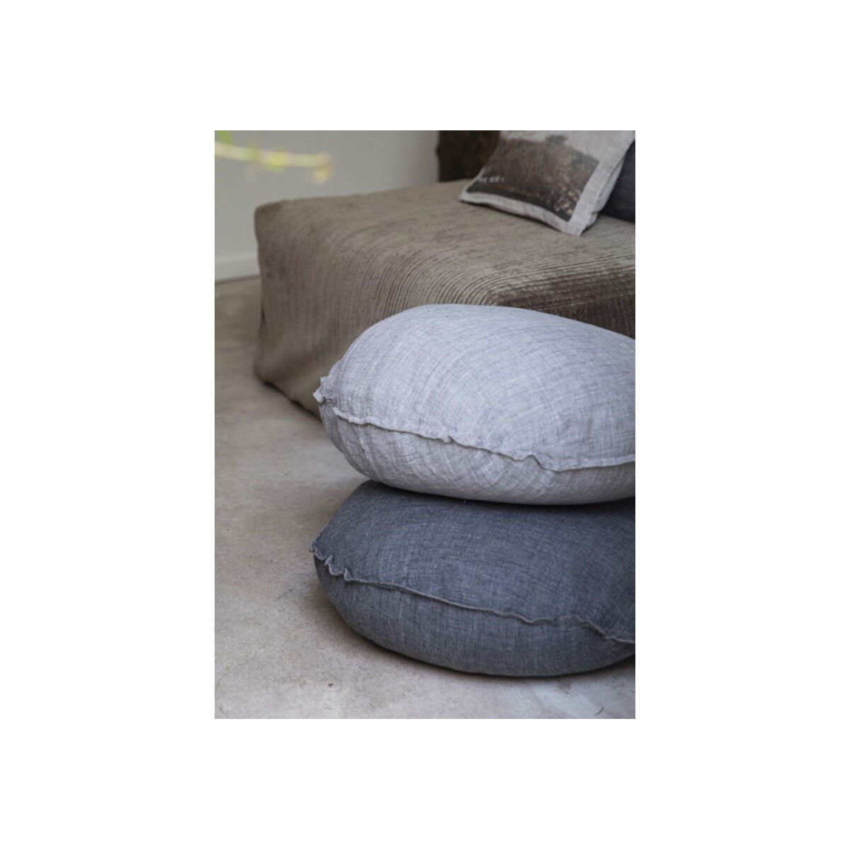 BEN Coussin rond diam. 63cm en lin changeant - Grey - BED AND PHILOSOPHY