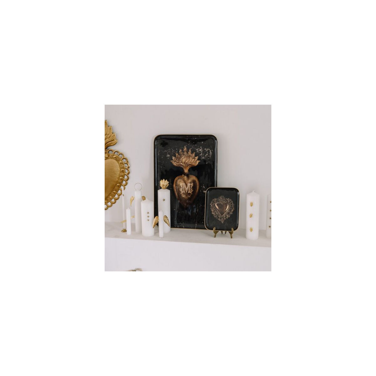 Le plateau Coeur Maria de chez Boncoeurs est idéal pour le service comme en décoration. On aime son fond carbone marbré et son imprimé exvoto. Un produit plein de poésie et de spiritualité qui trouvera facilement sa place dans votre intérieur.