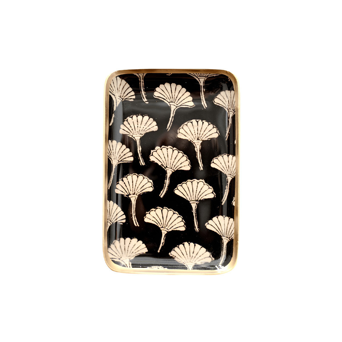 Le plateau arbore une couleur carbone élégante, agrémentée d’un motif délicat de feuilles de ginkgo, représentant une harmonie parfaite entre nature et art. Sa bordure dorée, appliquée à la main, ajoute une note luxueuse, rendant chaque pièce unique et spéciale.