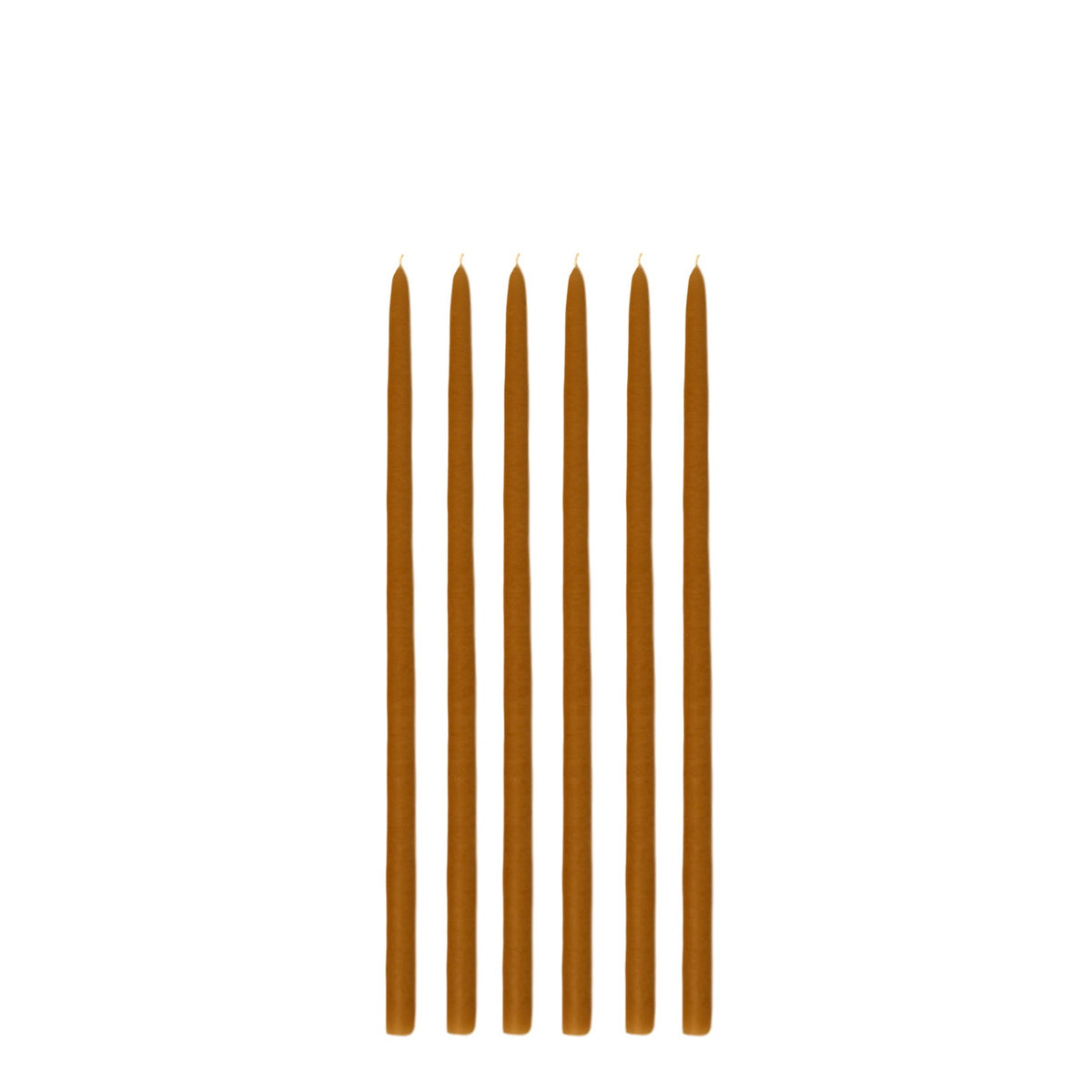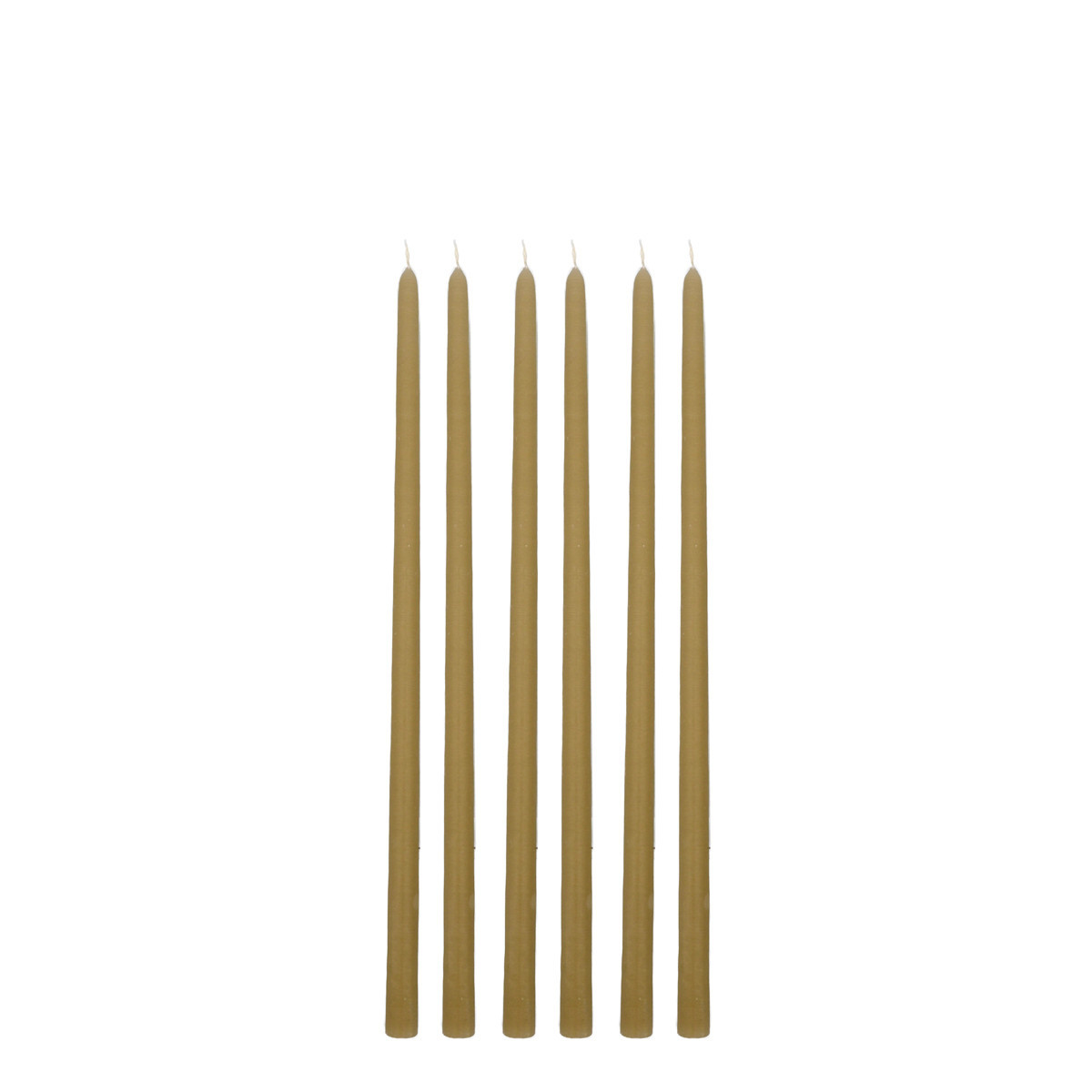 Lot de 6 Bougies Longues FLEURISTE Boncoeurs. Diamètre 1 cm, Hauteur 30 cm. Composées de cire d'abeille et de paraffine. Couleurs Hostie, Vieil or et Chanvre.