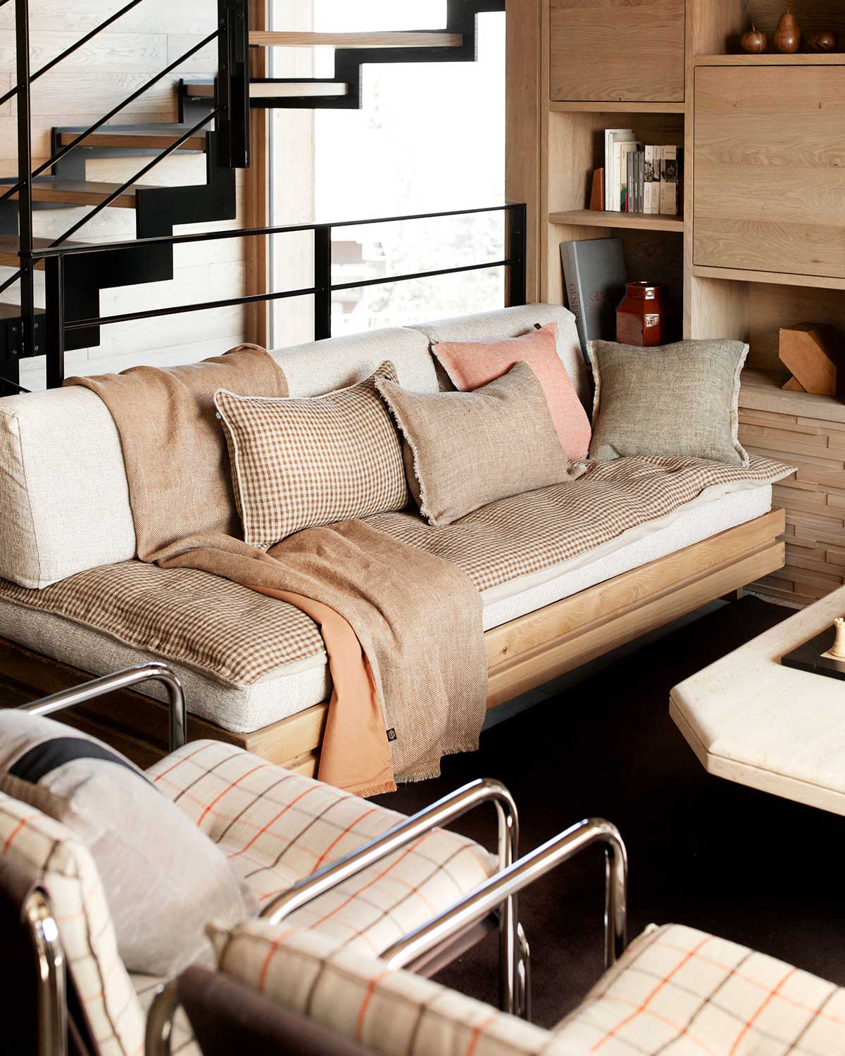 - Automne/Hiver : matières généreuses, couleurs profondes et plaids cocooning invitent à créer une ambiance chaleureuse et réconfortante.