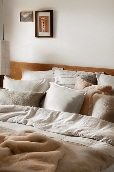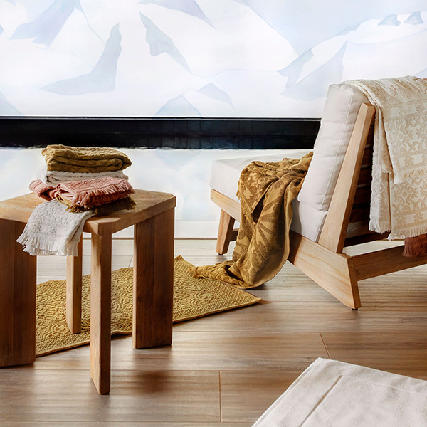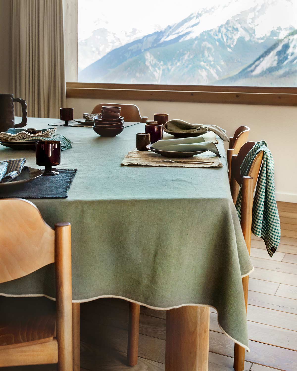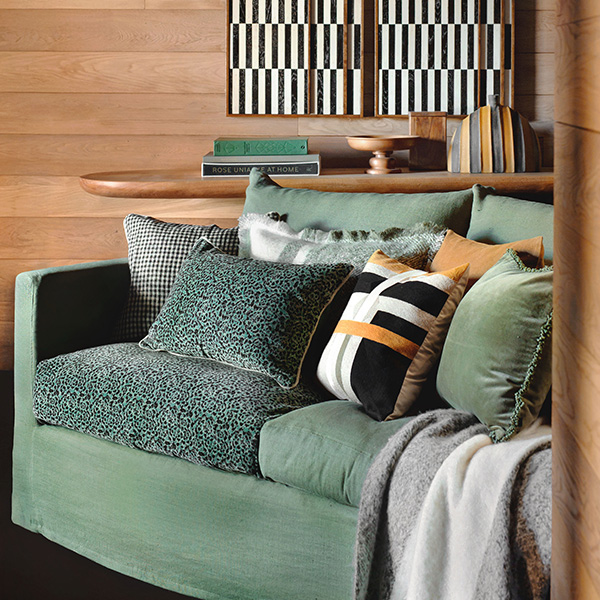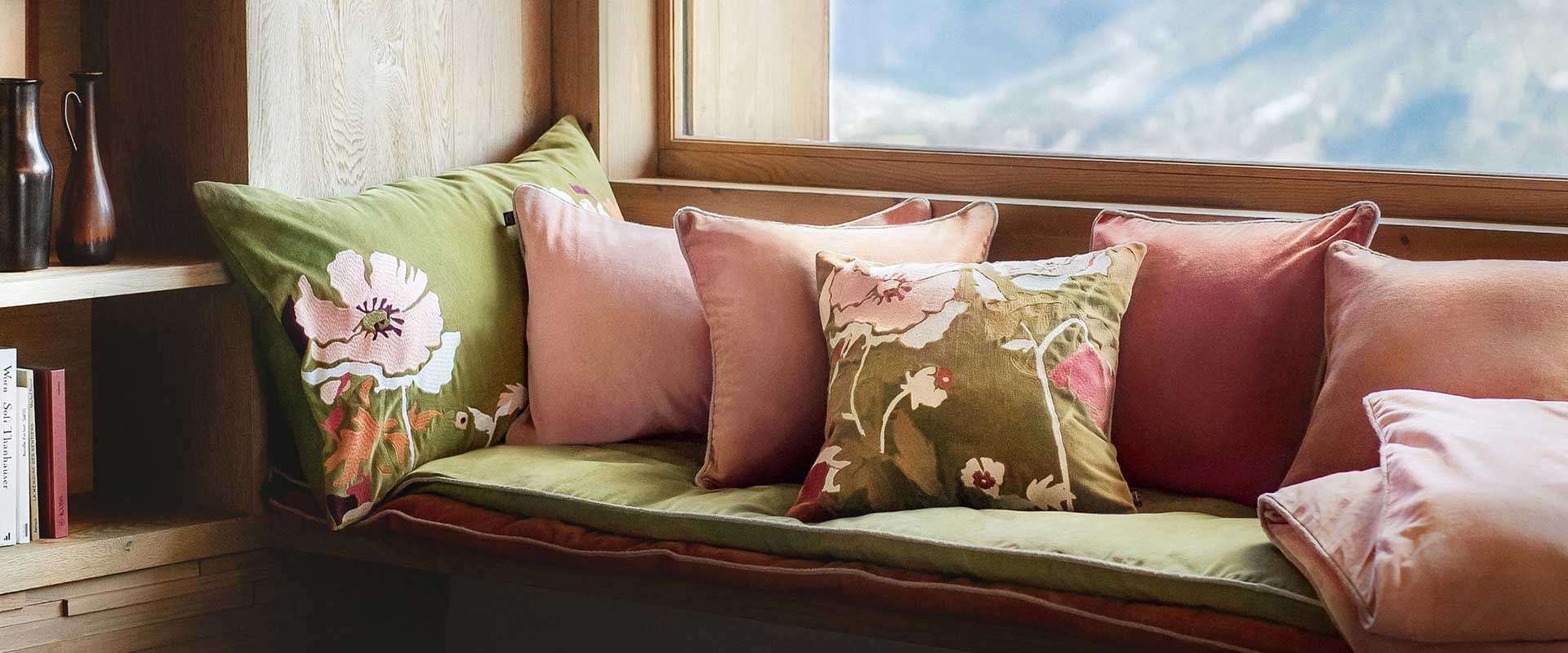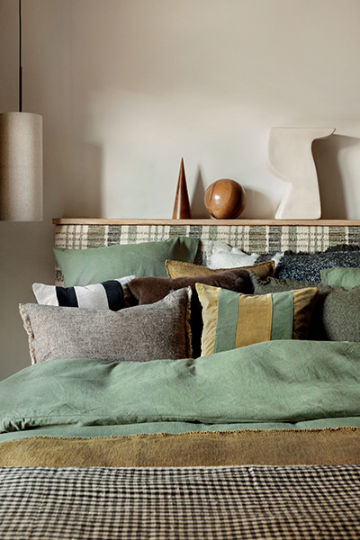 La collection automne-hiver 2025 s’inspire des montagnes silencieuses, de la neige qui tombe délicatement, du vent qui murmure et du feu qui réchauffe, pour insuffler à chaque intérieur une parenthèse de sérénité. Jeux de contrastes, richesse des matières et subtilité des finitions composent une harmonie raffinée où le velours enveloppant, le lin lavé intemporel, les broderies délicates et la fourrure moelleuse recréent l’esprit feutré d’un cocon apaisant.