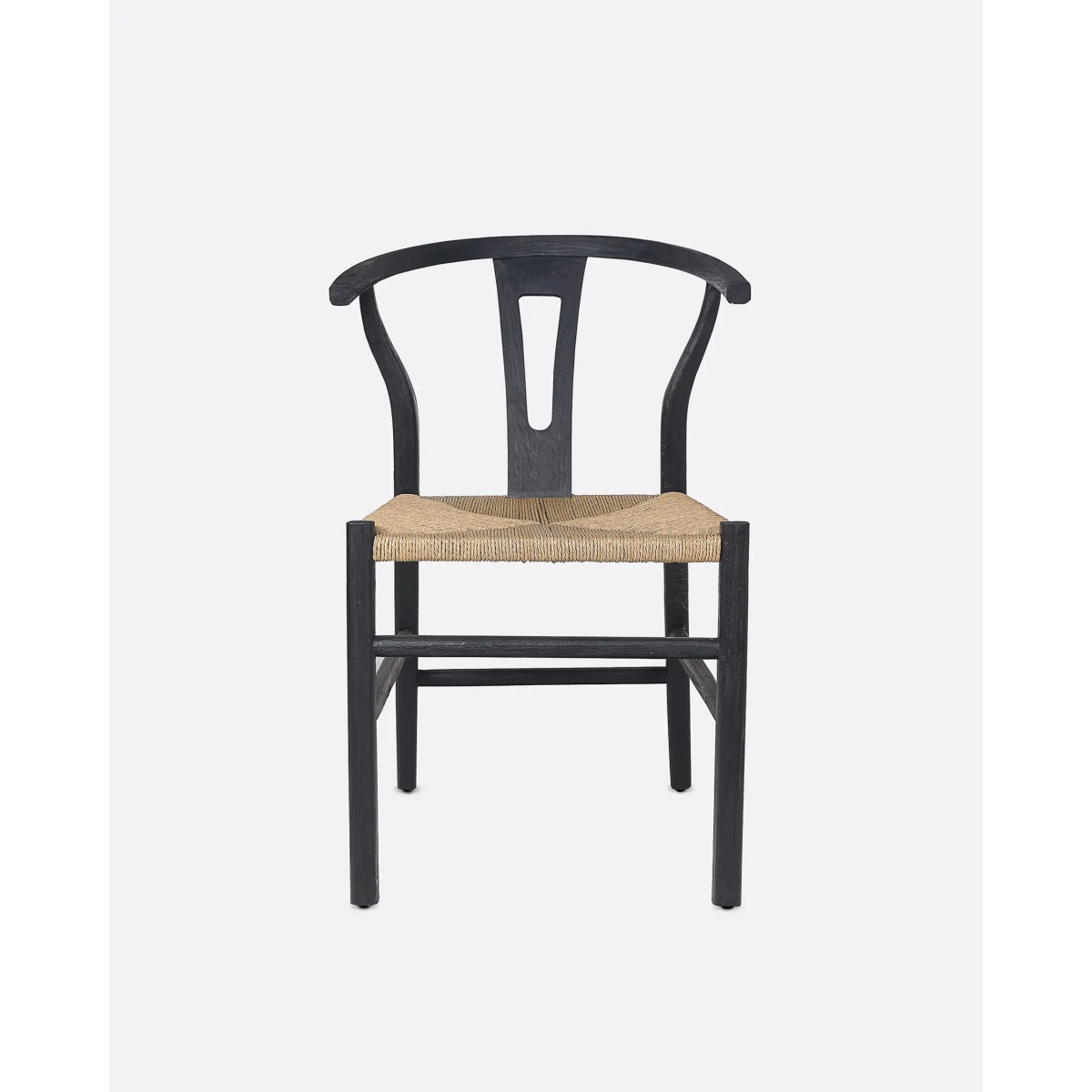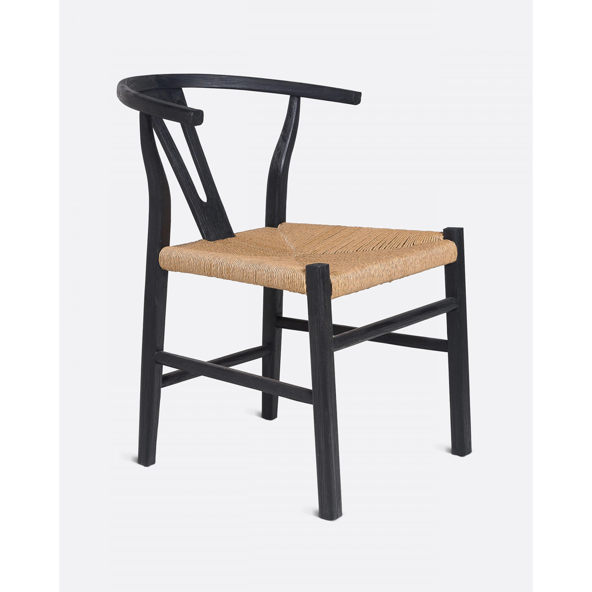 Chaise ROB Dareels en teck et corde de papier noire, design contemporain et naturel, élégance et confort pour salle à manger ou espace de vie.