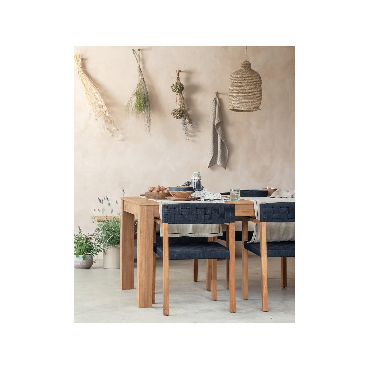 Chaise CORA Dareels en teck et corde tressée noire, design naturel et durable. Élégance épurée pour salle à manger ou espace convivial.