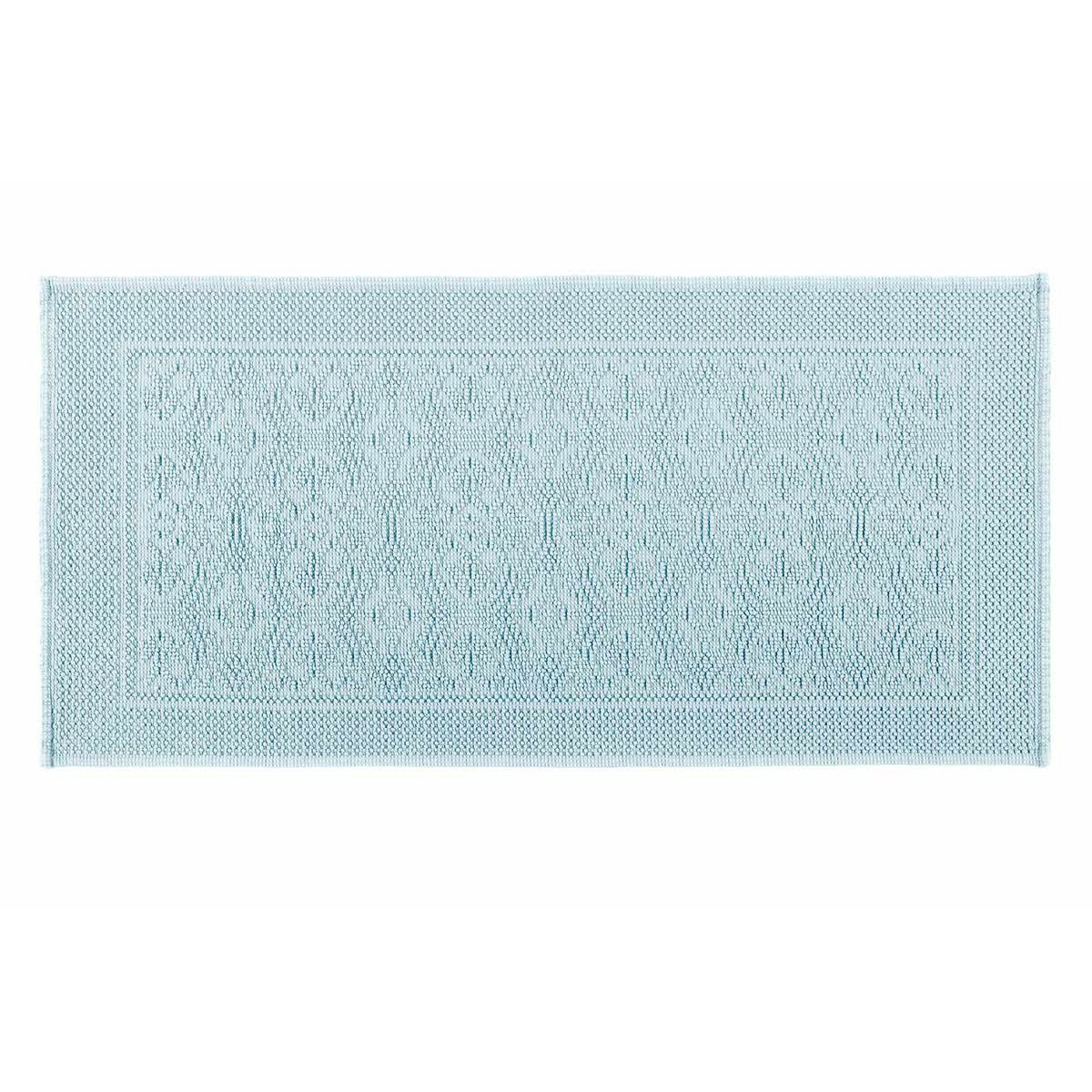 Tapis de bain en coton au tissage motif grains de riz. Bords frangés sur les 4 côtés. Plusieurs coloris et 2 dimensions.
