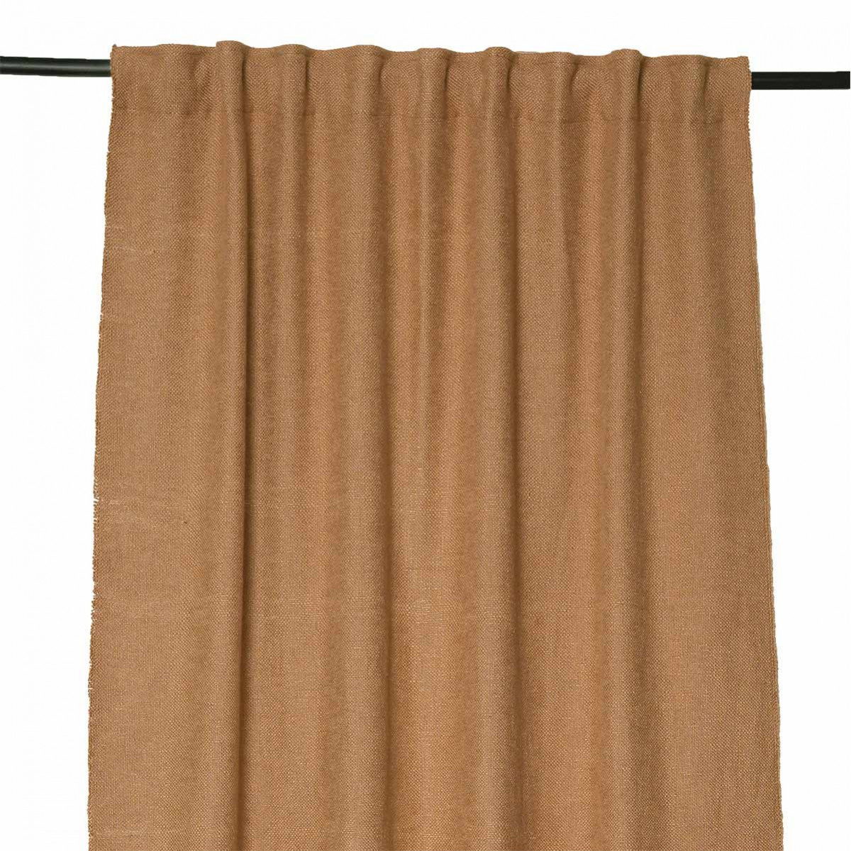 Confectionné à partir d'un mélange de fibres, ce rideau offre un tombé élégant et une grande résistance. Son design uni met en valeur le travail de la matière, tandis que son double système d'attache le rend particulièrement polyvalent.
