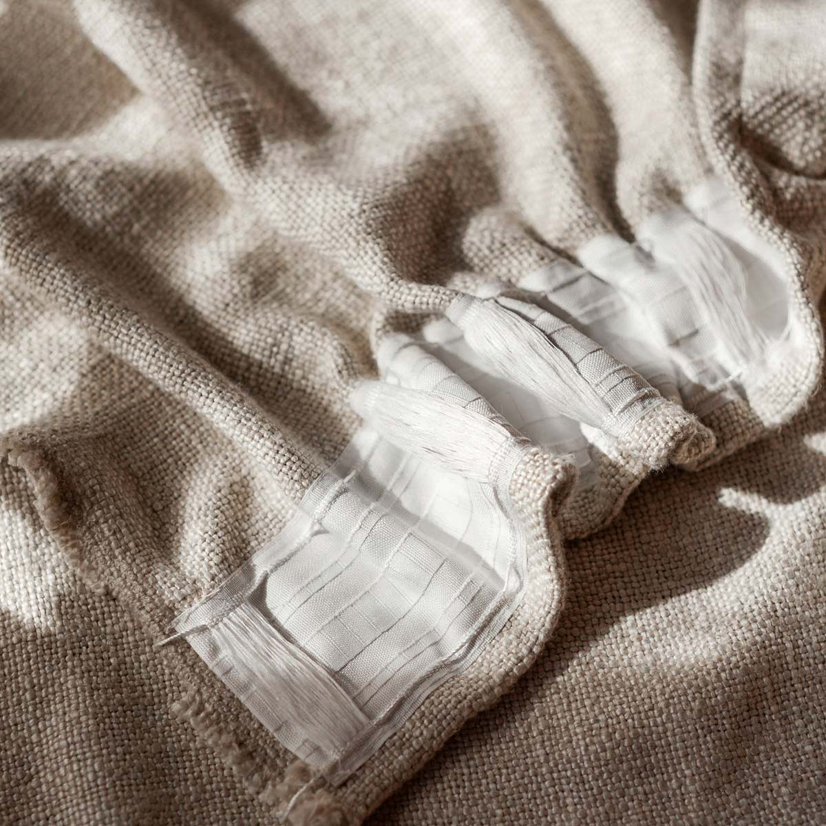 Pan de rideau 100% coton lavé, finition point bourdon de chez Vent du Sud. Livré sans les anneaux pinces que vous pouvez commander ICI