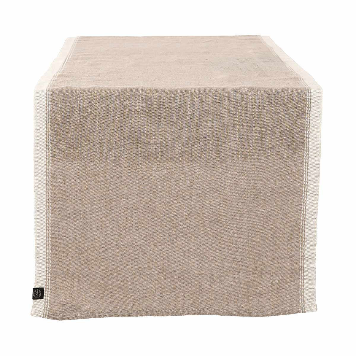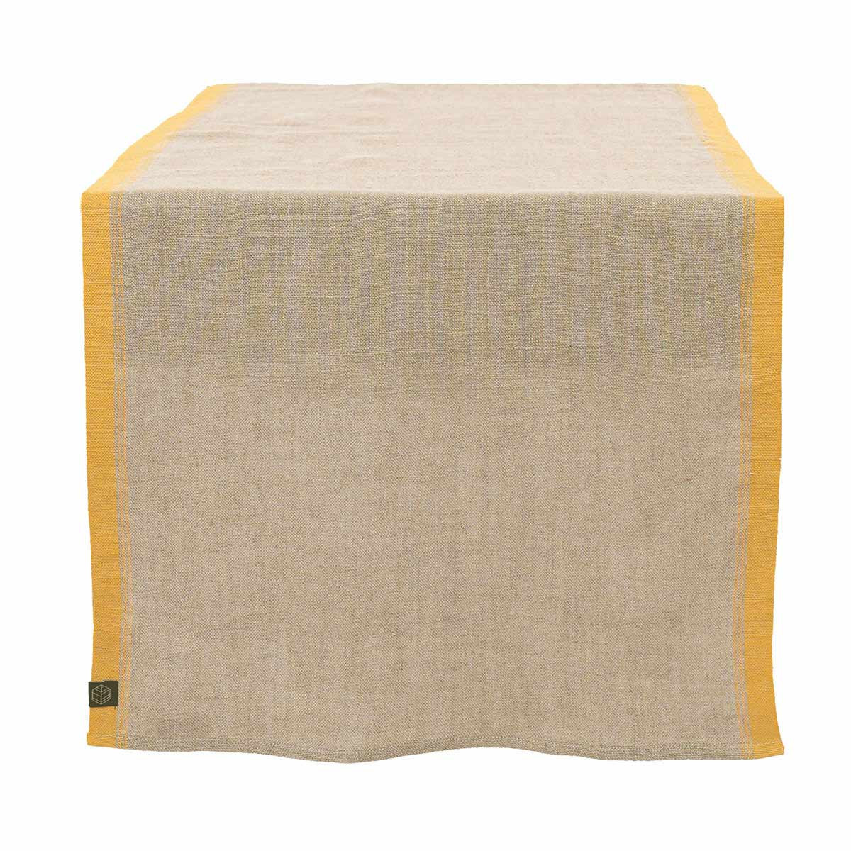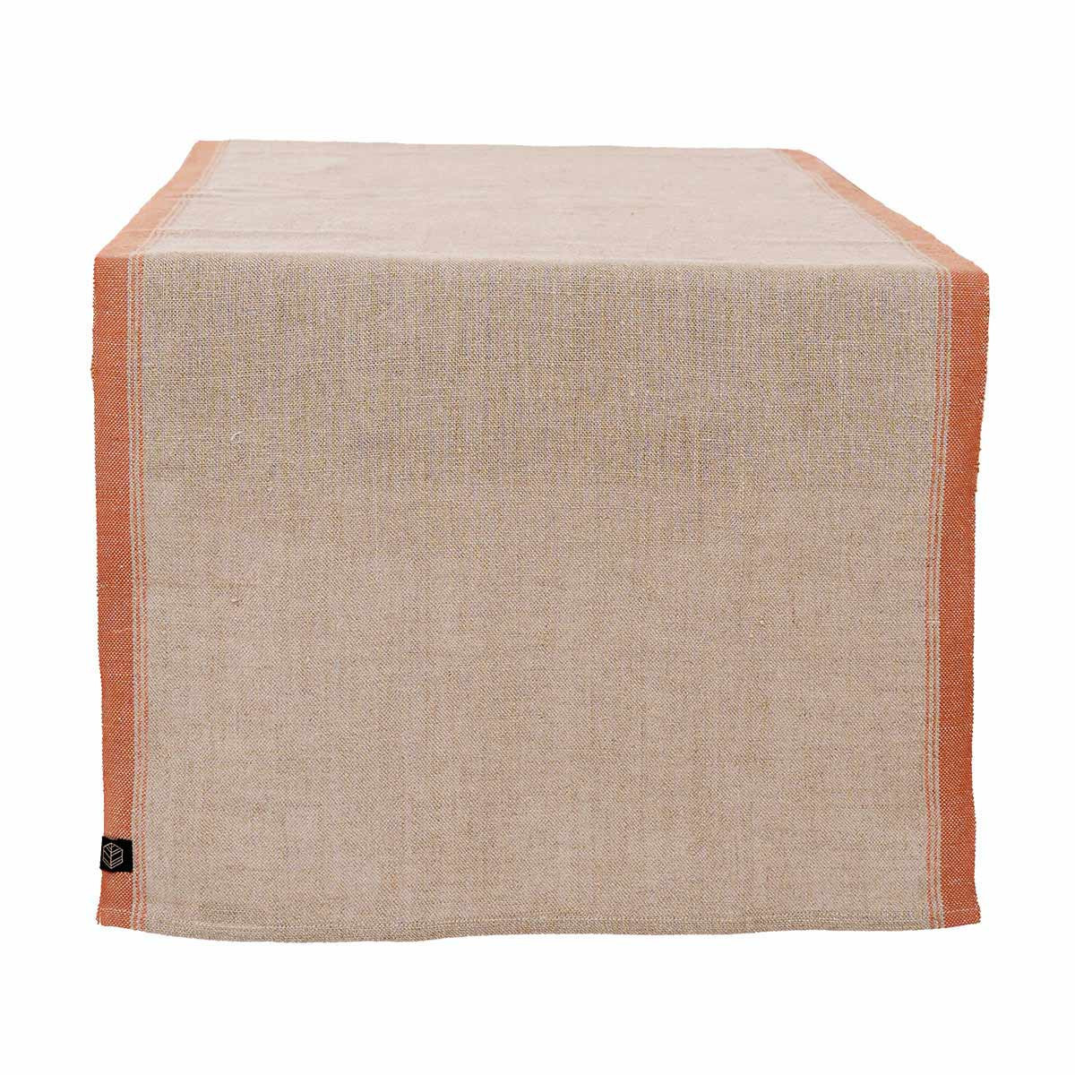 Chemin de table Havana Haomy (48x160 cm) en lin lavé et coton. Design épuré avec bord coloré et liserés. Certifié Oeko-Tex & Master of Linen. Chic naturel.