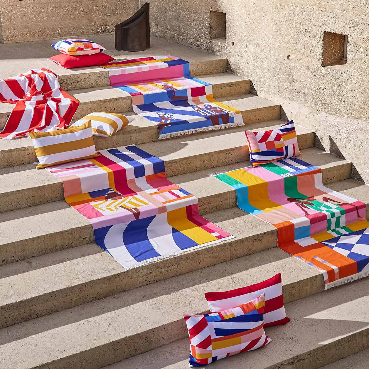 Sa conception astucieuse présente deux faces complémentaires : une face en tissu plat aux couleurs vibrantes pour le style et pour ne pas retenir le sable, et une face en bouclette éponge pour vous sécher tout en douceur après la baignade. Les finitions à franges délicates ajoutent une touche bohème chic, idéale pour vos journées au bord de l'eau ou vos moments de détente au spa.