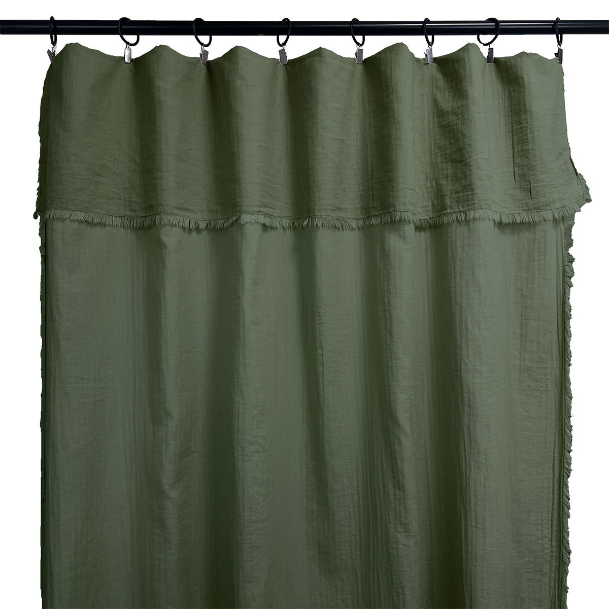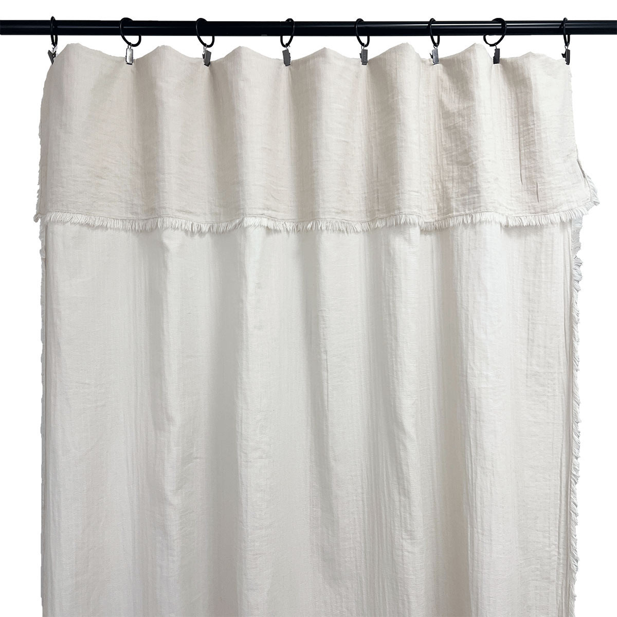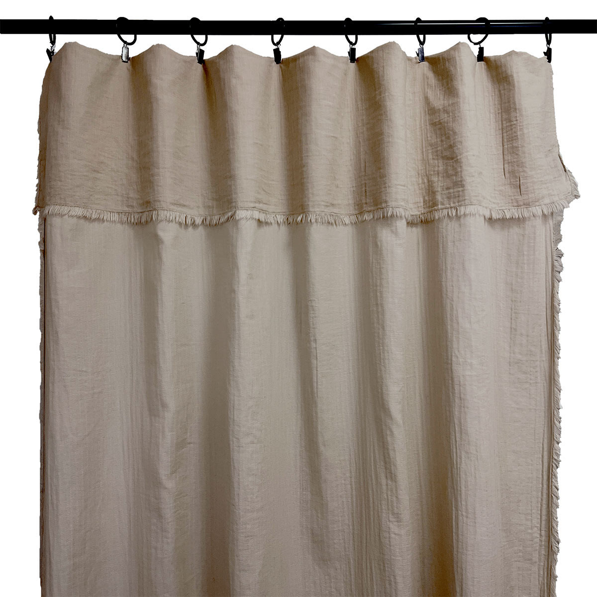 Ce modèle est conçu pour une installation moderne avec des accroches pinces (non fournies). Ce système de suspension permet non seulement d'ajuster la hauteur, mais aussi de créer un joli drapé qui met en valeur la fluidité de la gaze et le détail de ses franges. Il se décline en quatre nuances organiques : Craie, Kaki, Lin et Mocaccino.