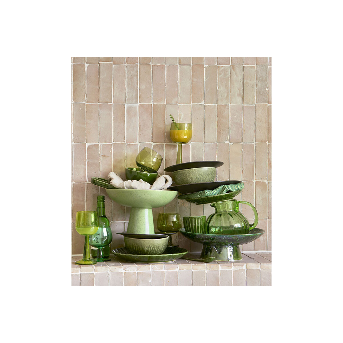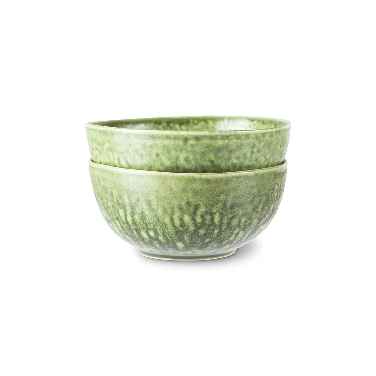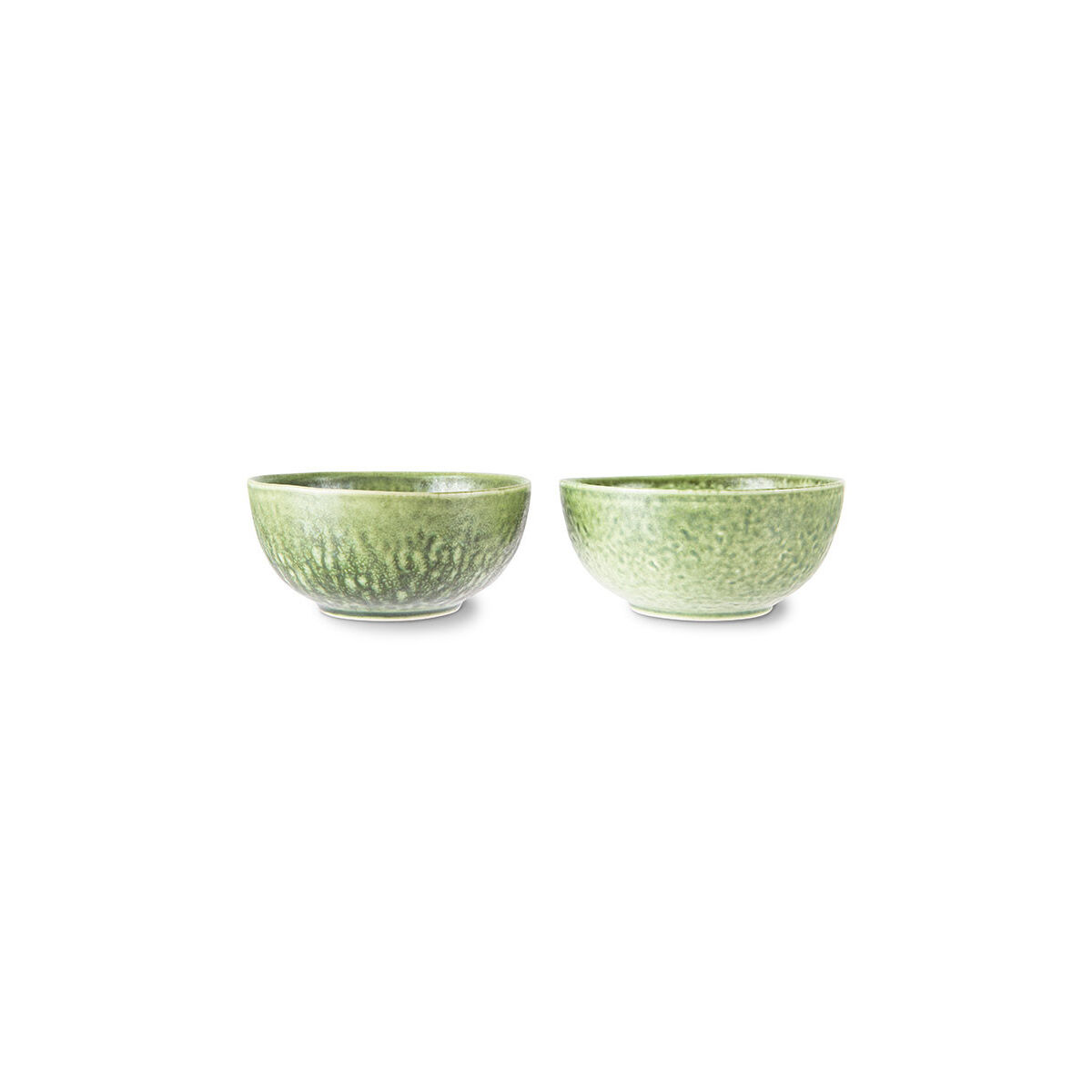 Set de 2 Bols en céramique striée coloris émeraude de chez HK LIVING. On apprécie sa finition fait main et ses nuances de vert. A mixer avec les assiettes, tasses et plats de la même collection.