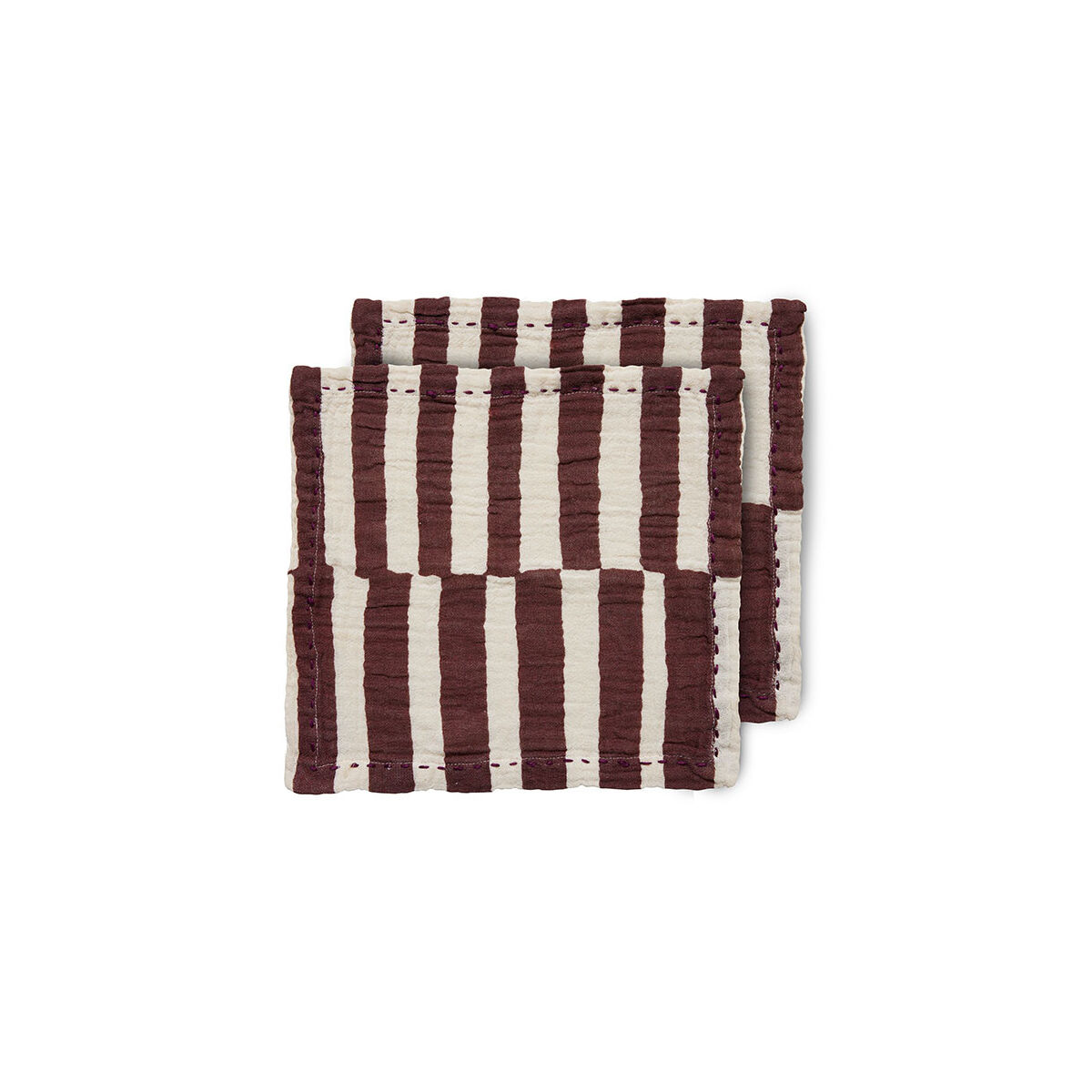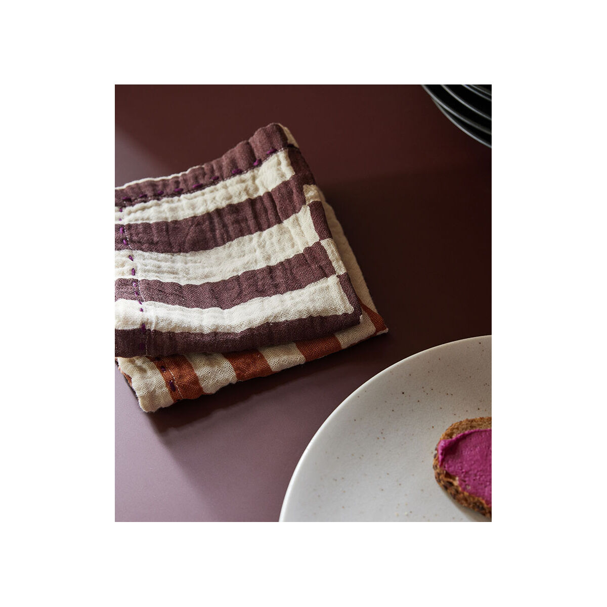 Serviettes de table coton rayures bordeaux (lot de 2)