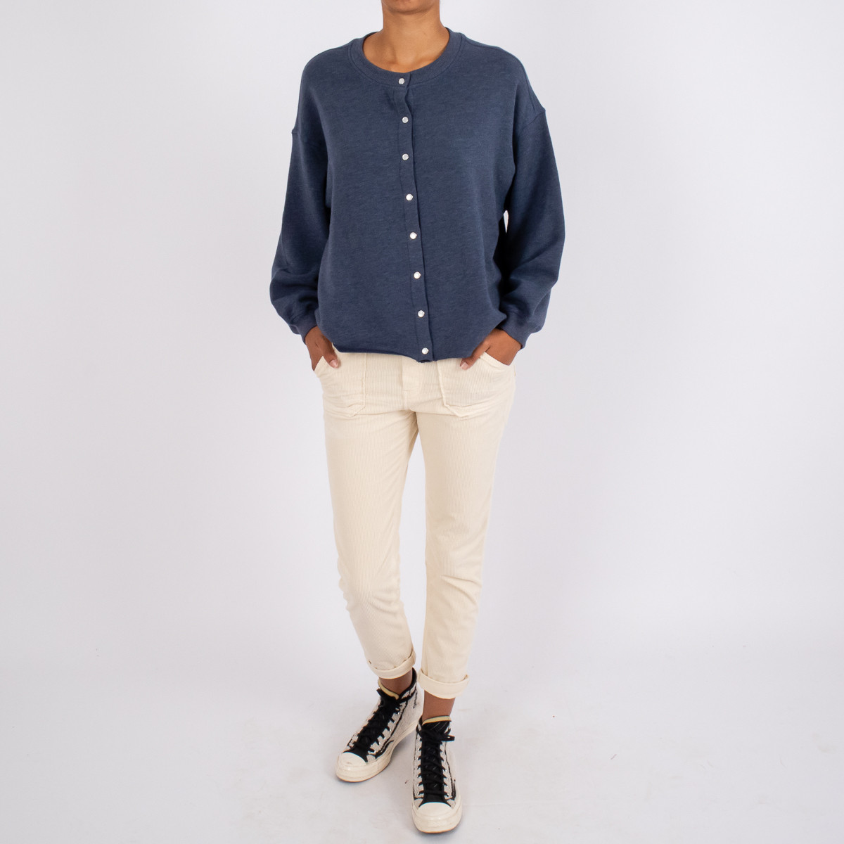 Le gilet Valentine de HOD Paris allie confort et élégance avec sa coupe droite, son boutonnage classique et ses bords francs modernes. Confectionné en coton doux et légèrement stretch, il s’impose comme une pièce polyvalente, facile à porter au quotidien ou en superposition.