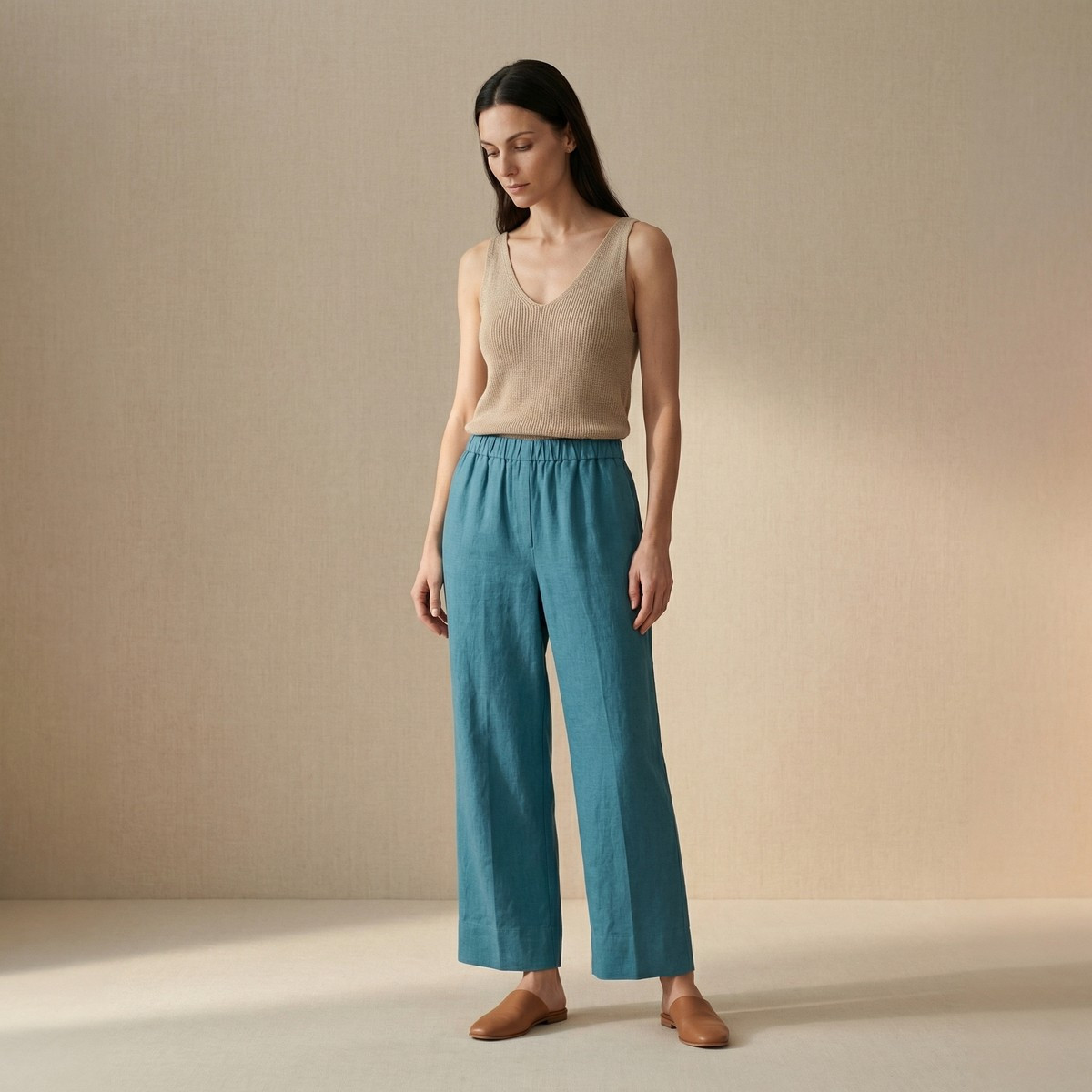 Associations : Base idéale pour des hauts colorés — tangerine, terracotta, vert sauge. En monochrome cream avec un haut en lin naturel pour une tenue capsule épurée. Se porte avec des sandales en cuir beige ou des sneakers blanches.