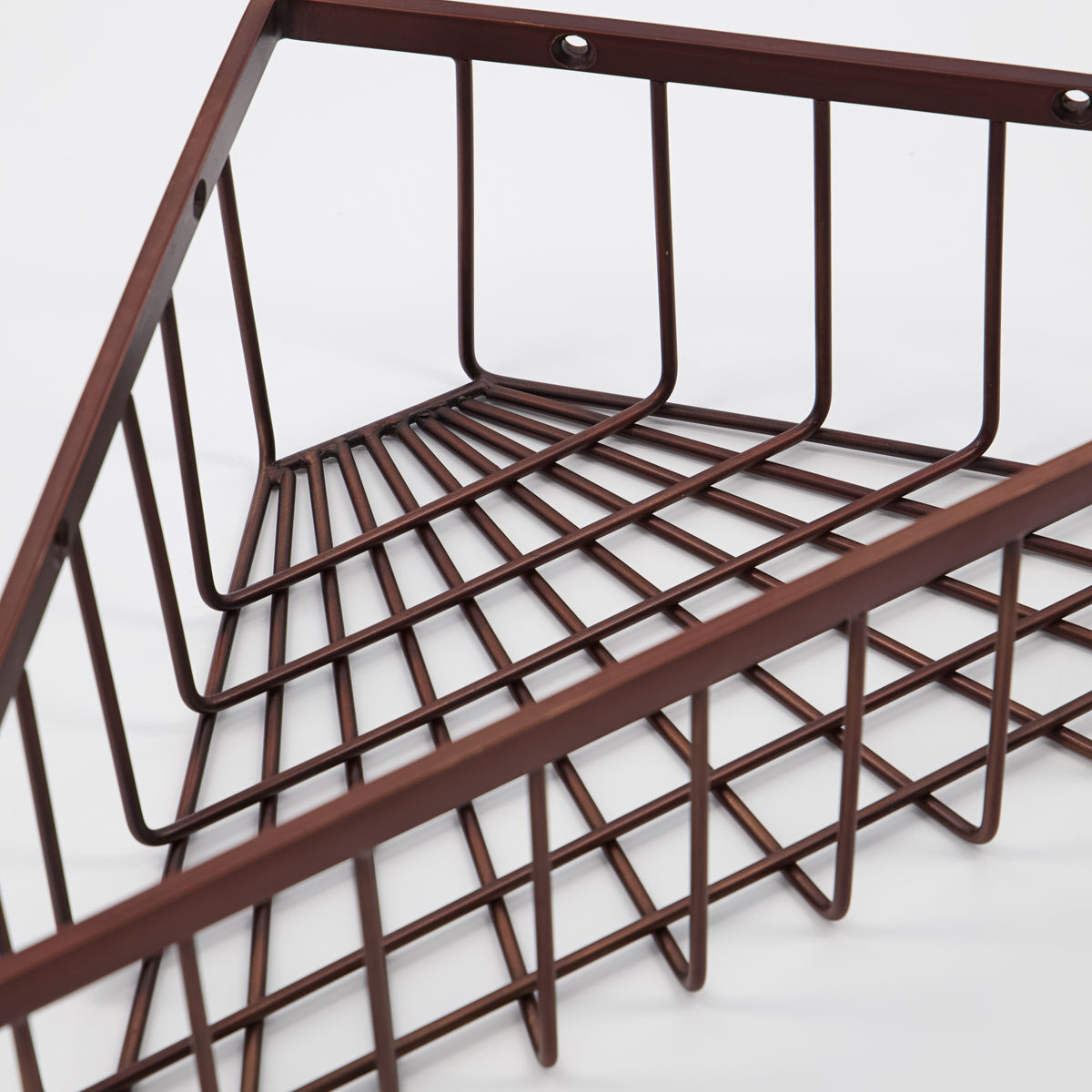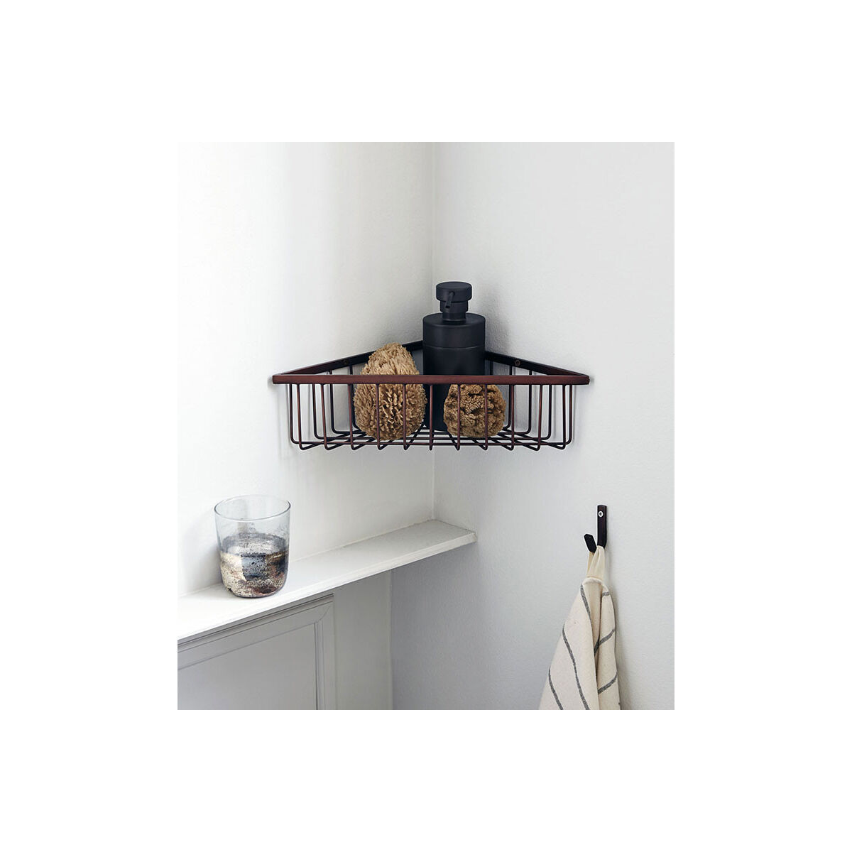 Etagère d'angle type panier qui vient compléter la gamme BATH de chez House Doctor. Idéale pour votre salle de bain cette étagère d'angle vous permettra d'y déposer flacons et savons en toute sécurité. On aime sa finition soignée, son coloris laiton bruni et son design simple et indémodable. A mixer avec les autres produits de la collection BATH. Existe aussi en coloris noir.