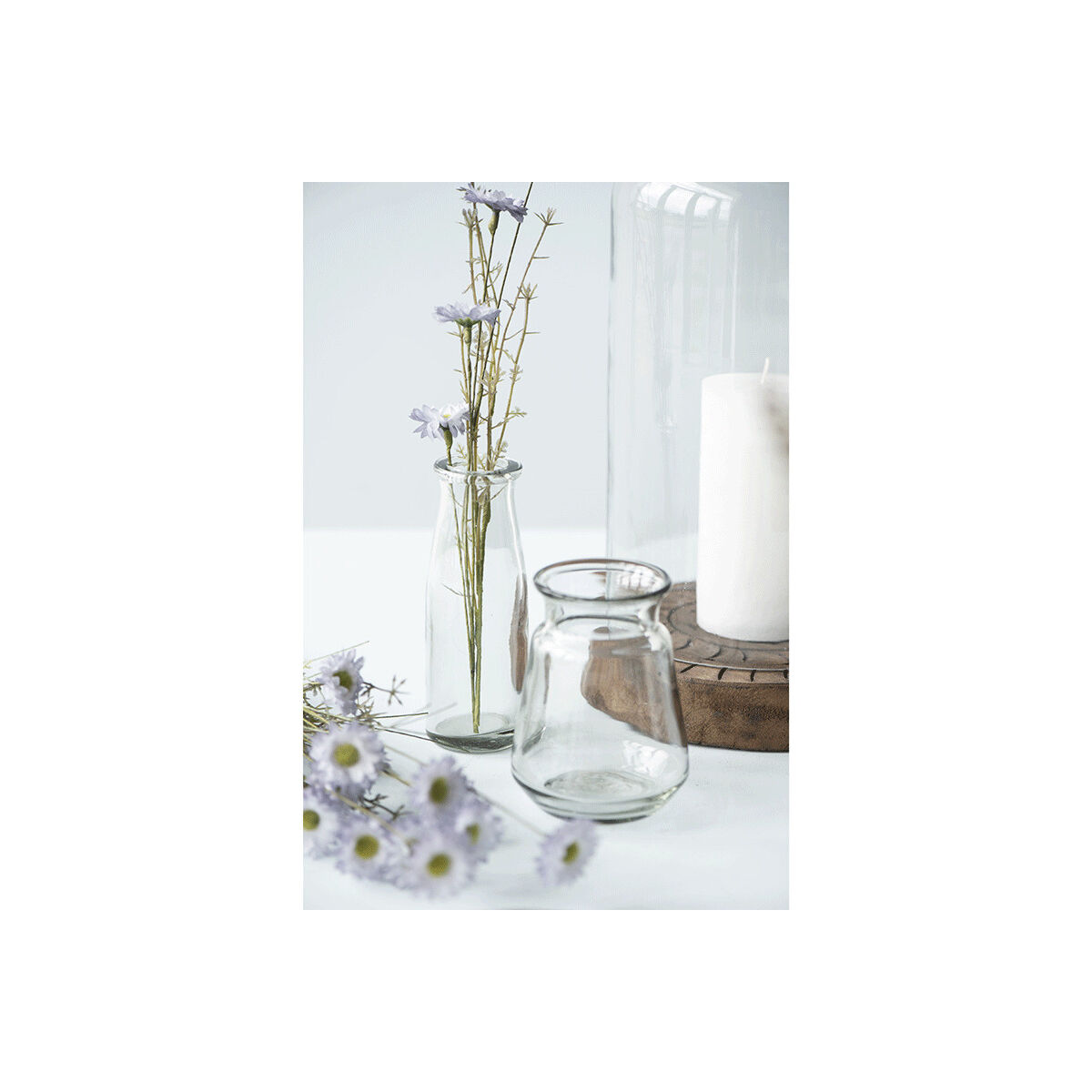 Vase transparent en verre. Agrémenter de quelques fleurs séchées ou d'un brin artificielle il participera à la décoration de votre pièce.