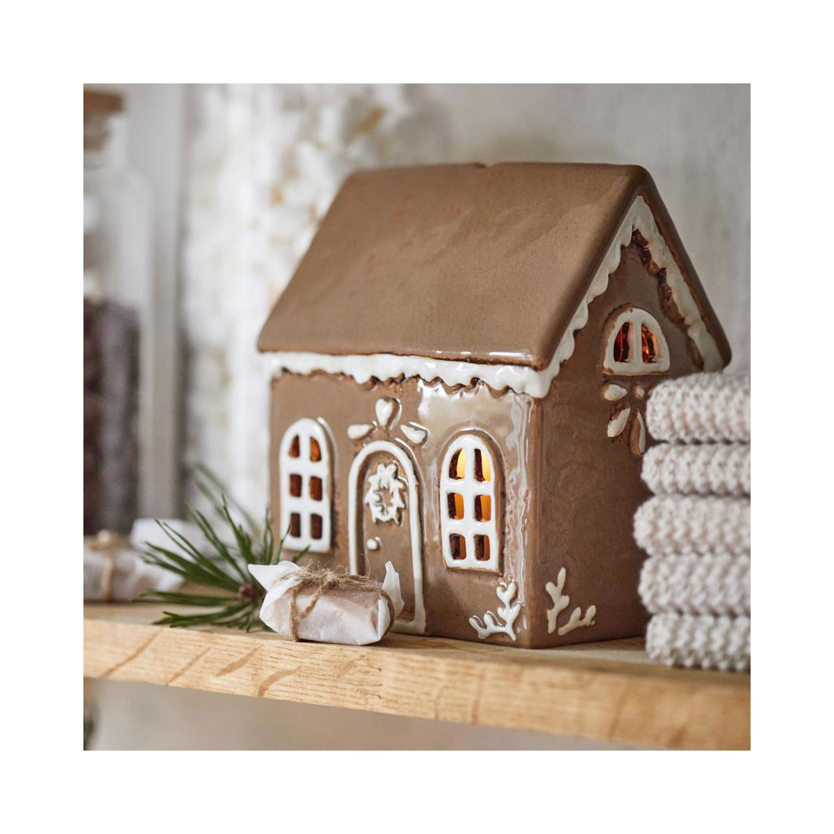 Maison photophore en céramique, effet pain d'épices de chez IB Laursen. Avec une petite bougie chauffe plat illuminez votre maison pain d'épices et créer ainsi une ambiance chaleureuse de Noël.