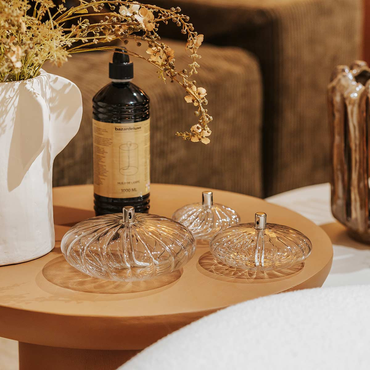 • Produit : Set de 3 Lampes à Huile Ellipse Striée + Huile