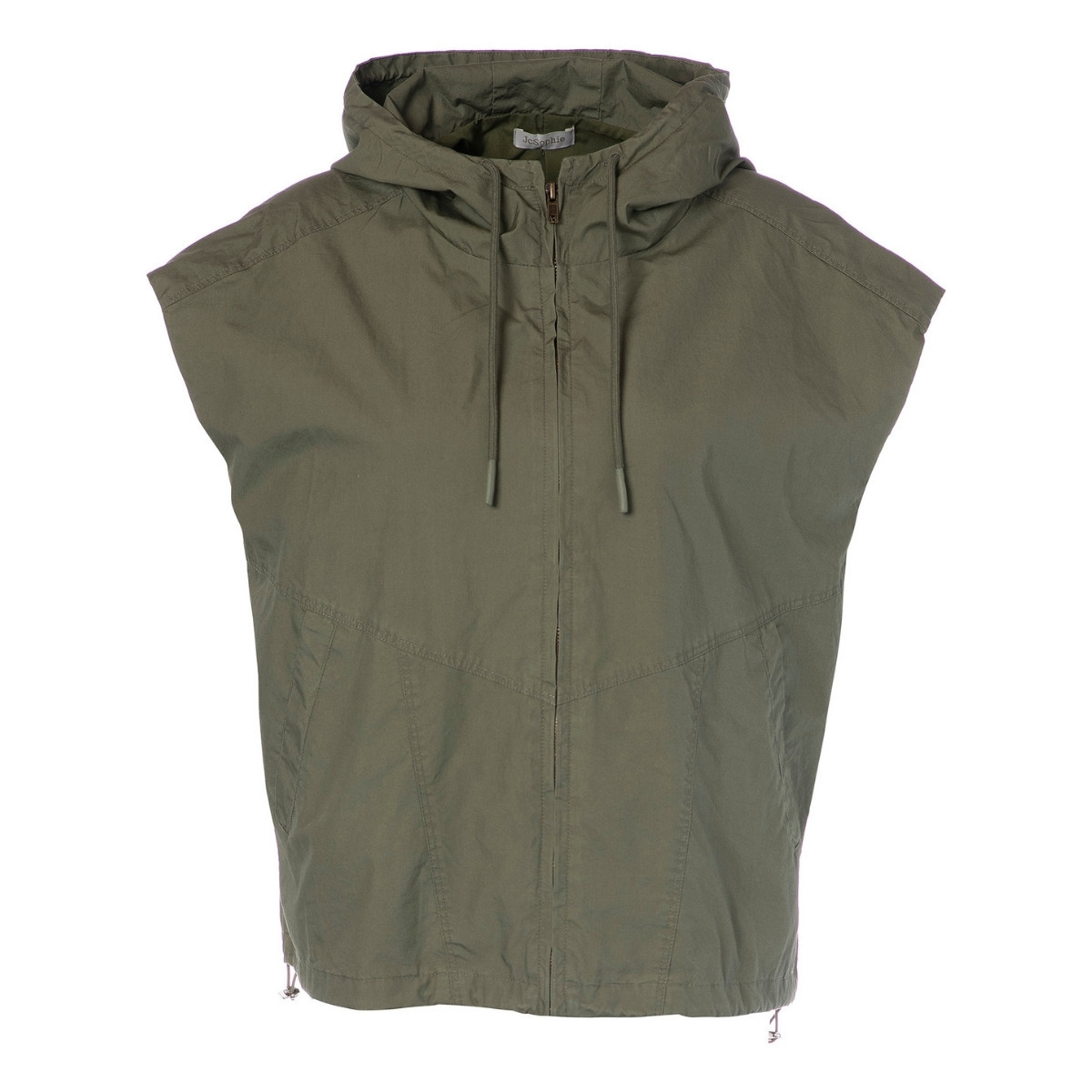 Veste sans manche à capuche en coton de JC Sophie. Fermeture zip, bas élastiqué. Coloris Dark blue et Army green. La veste sans manche idéale pour les journées entre deux saisons.
