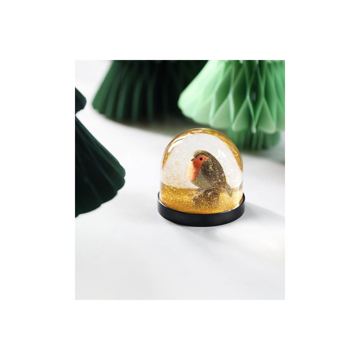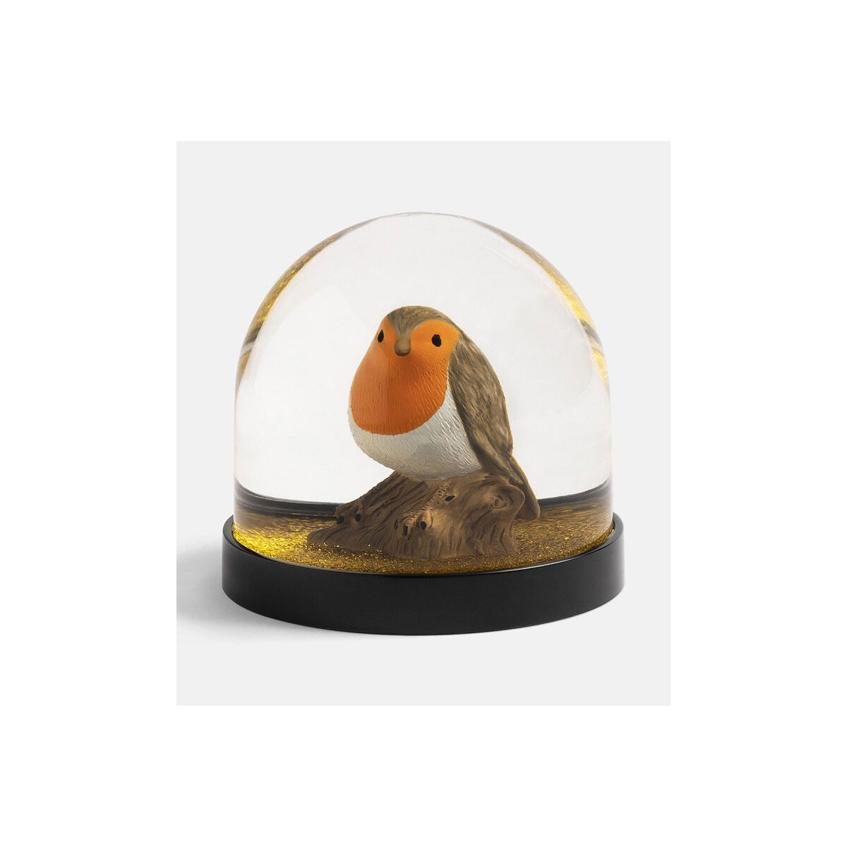 Le retour des boules de neige à collectionner avec ses petits personnages ou objets kitsch remis au gout du jour. Boule de Neige oiseau avec un joli Rouge-Gorge. Cette boule à la particularité d'avoir une neige dorée. A secouer sans modération !