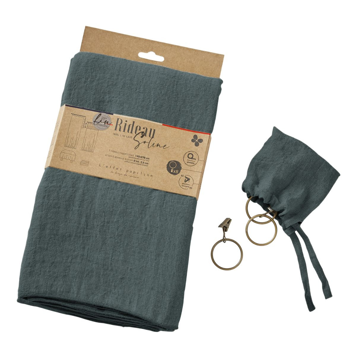 Rideau ajustable SOLINE de L'Effet Papillon. Lin lavé 100 %, 160 gr/m², point bourdon ton sur ton. 140 × 270 cm. 8 anneaux pinces inclus.