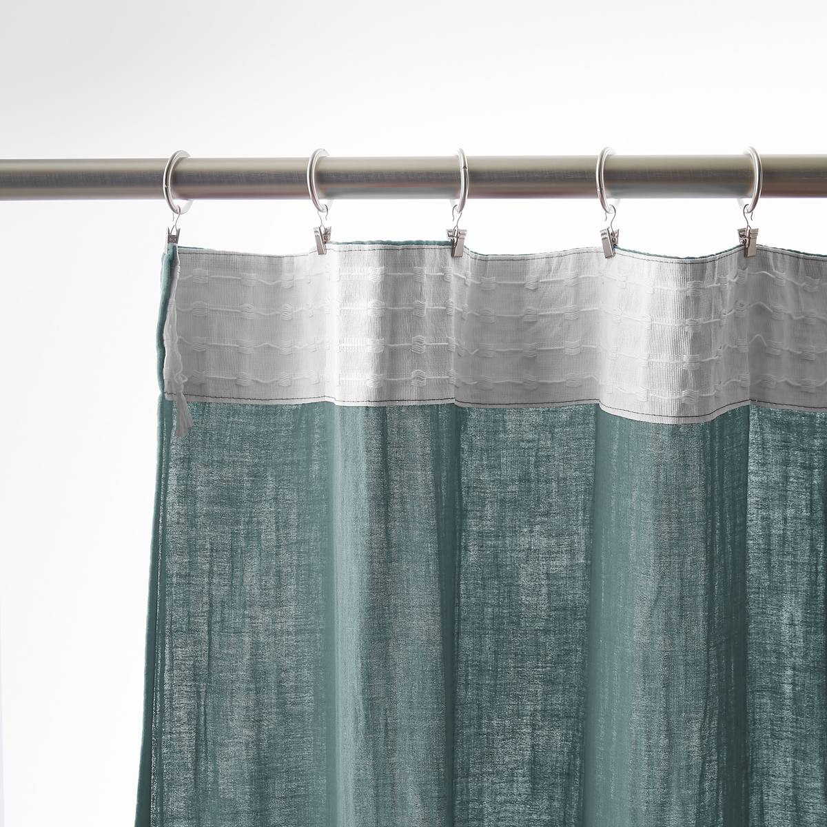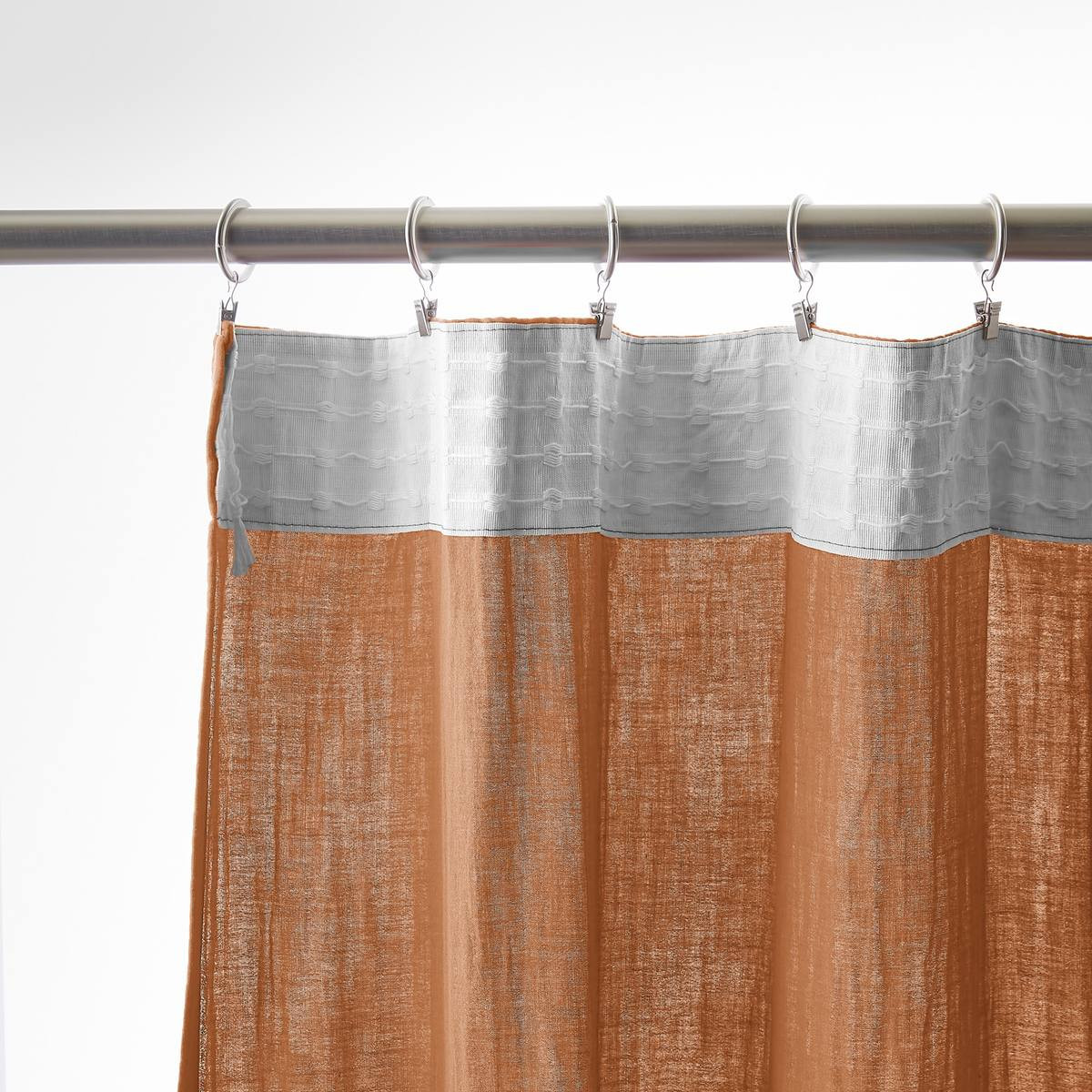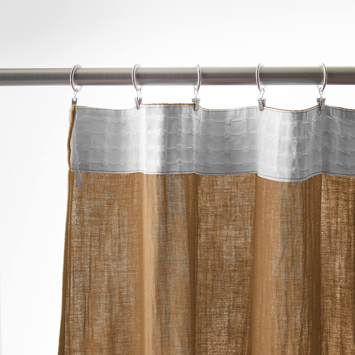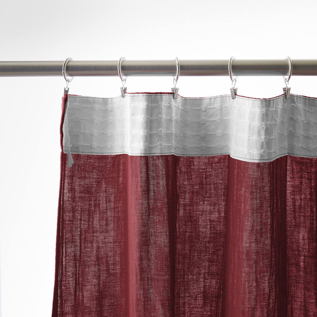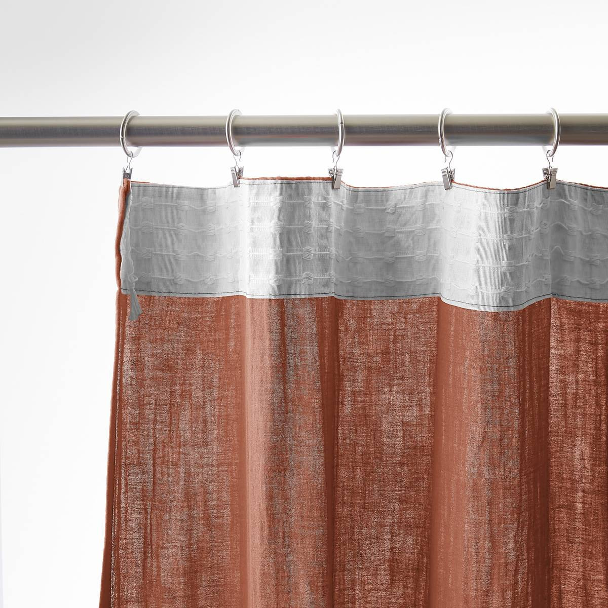 Installation simplifiée : Les anneaux pinces se positionnent facilement sur le rideau puis se glissent sur la tringle — aucun perçage, aucun système complexe, possibilité d'ajustement in situ pour optimiser le drapé selon l'esthétique souhaitée.