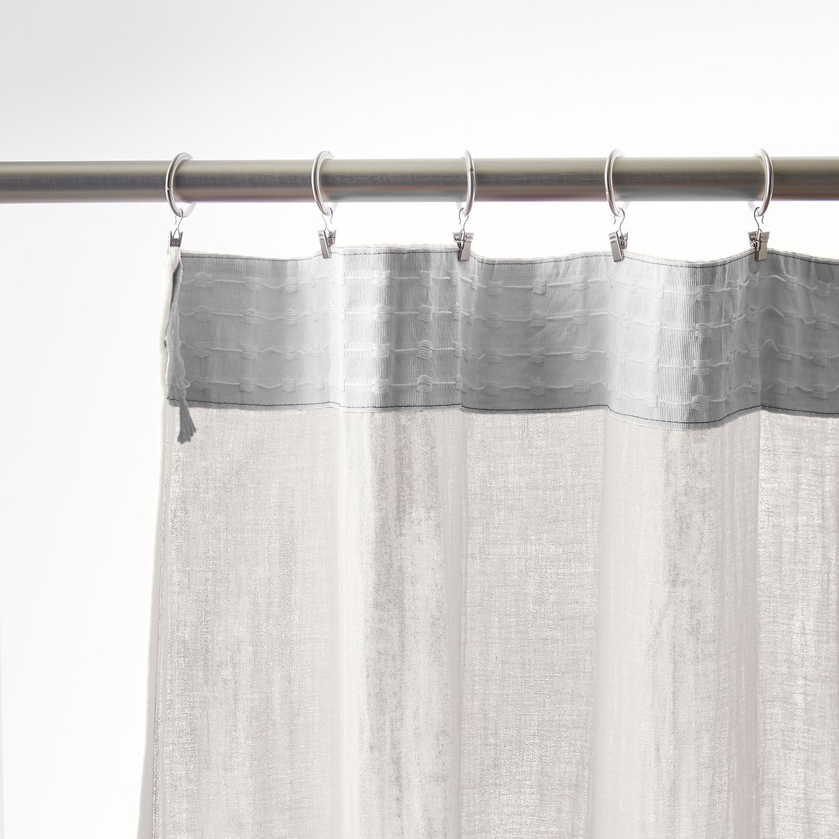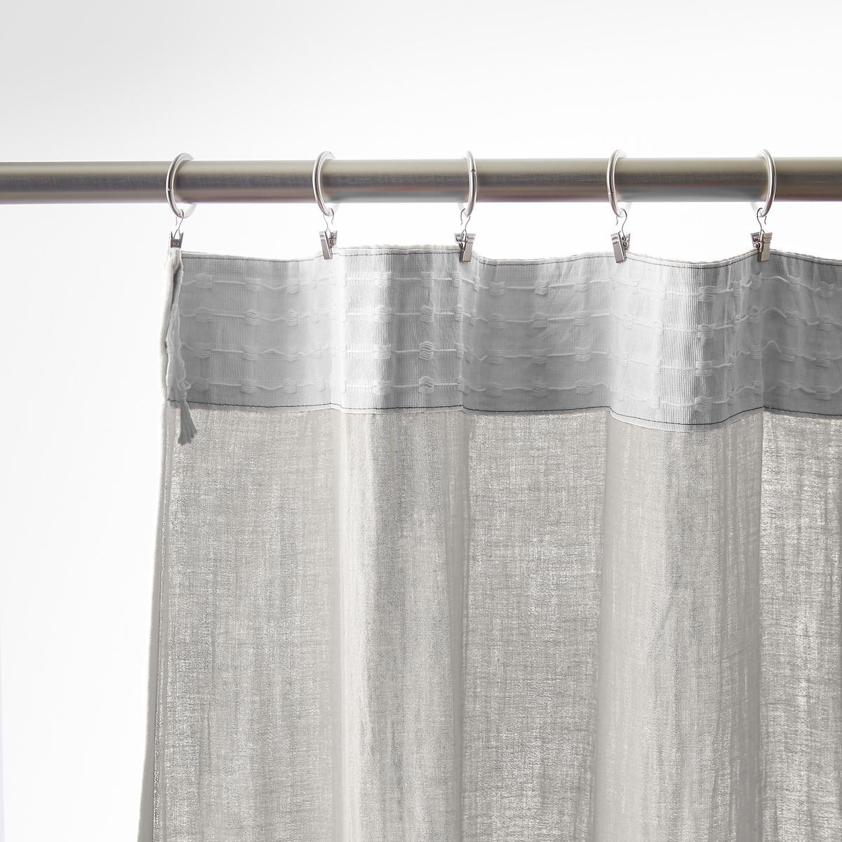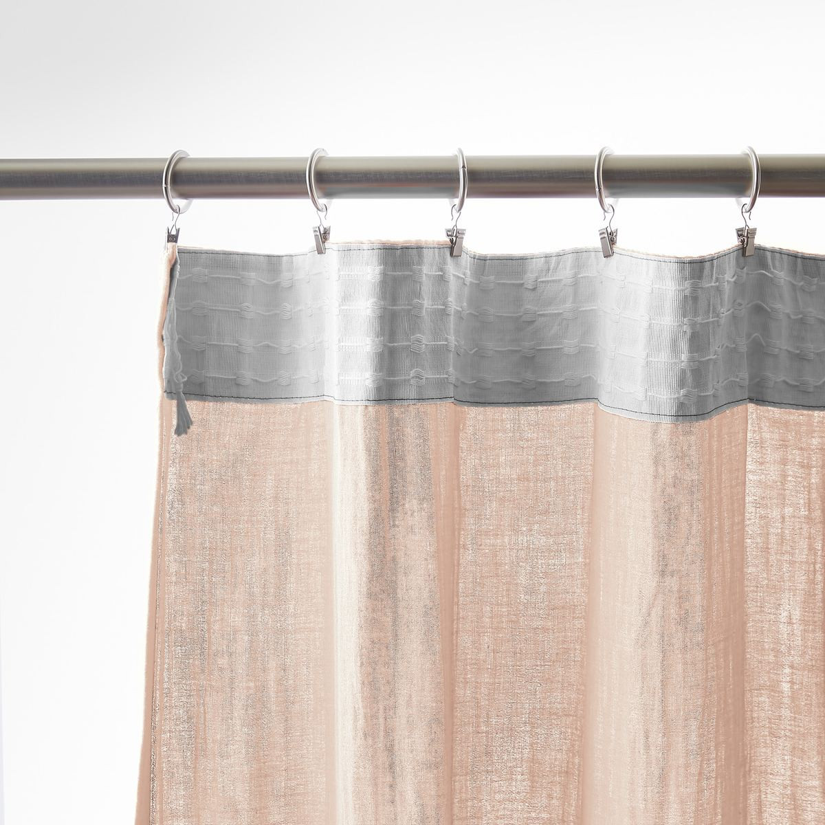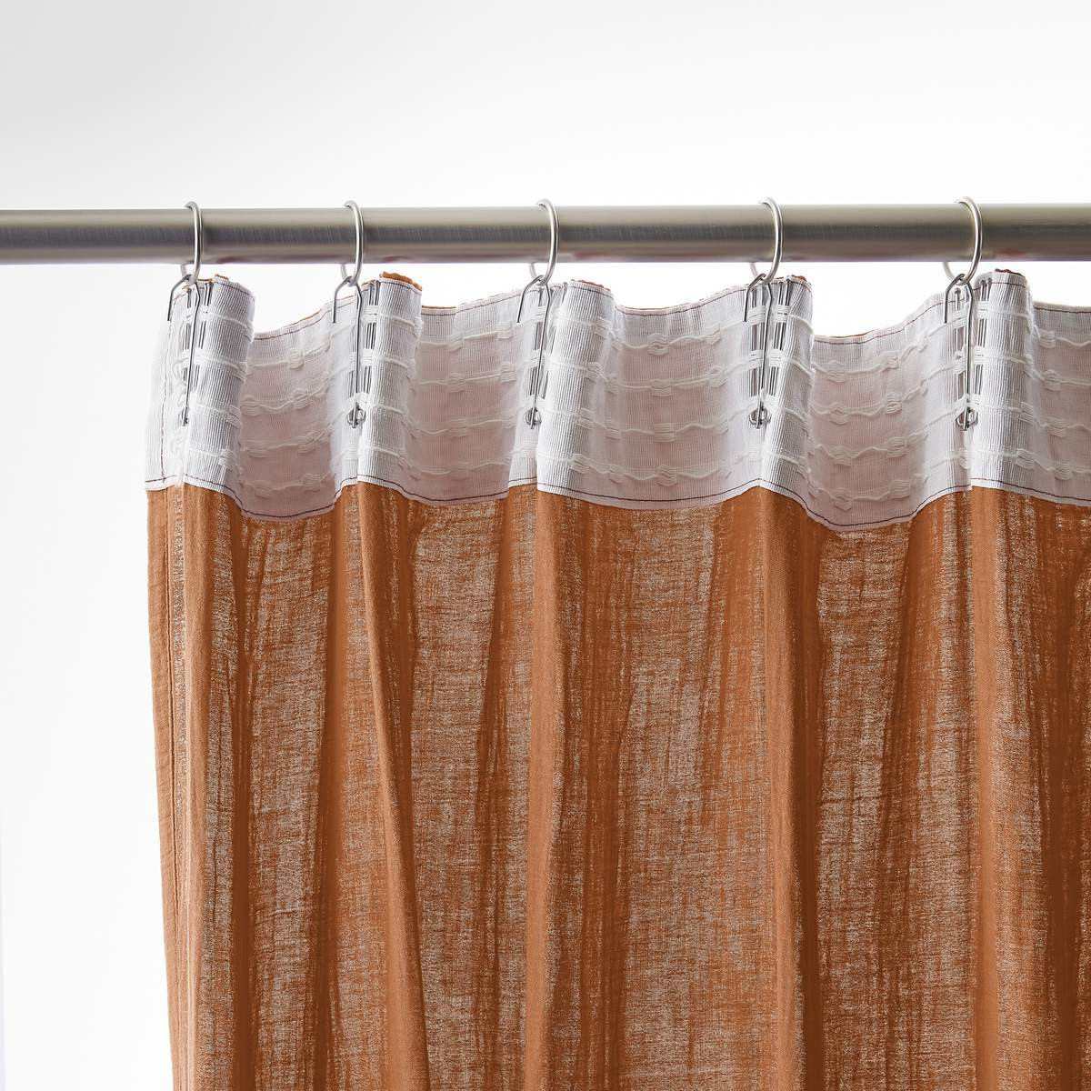 Installation simplifiée : Les anneaux pinces se positionnent facilement sur le rideau puis se glissent sur la tringle — aucun perçage, aucun système complexe, possibilité d'ajustement in situ pour optimiser le drapé selon l'esthétique souhaitée.