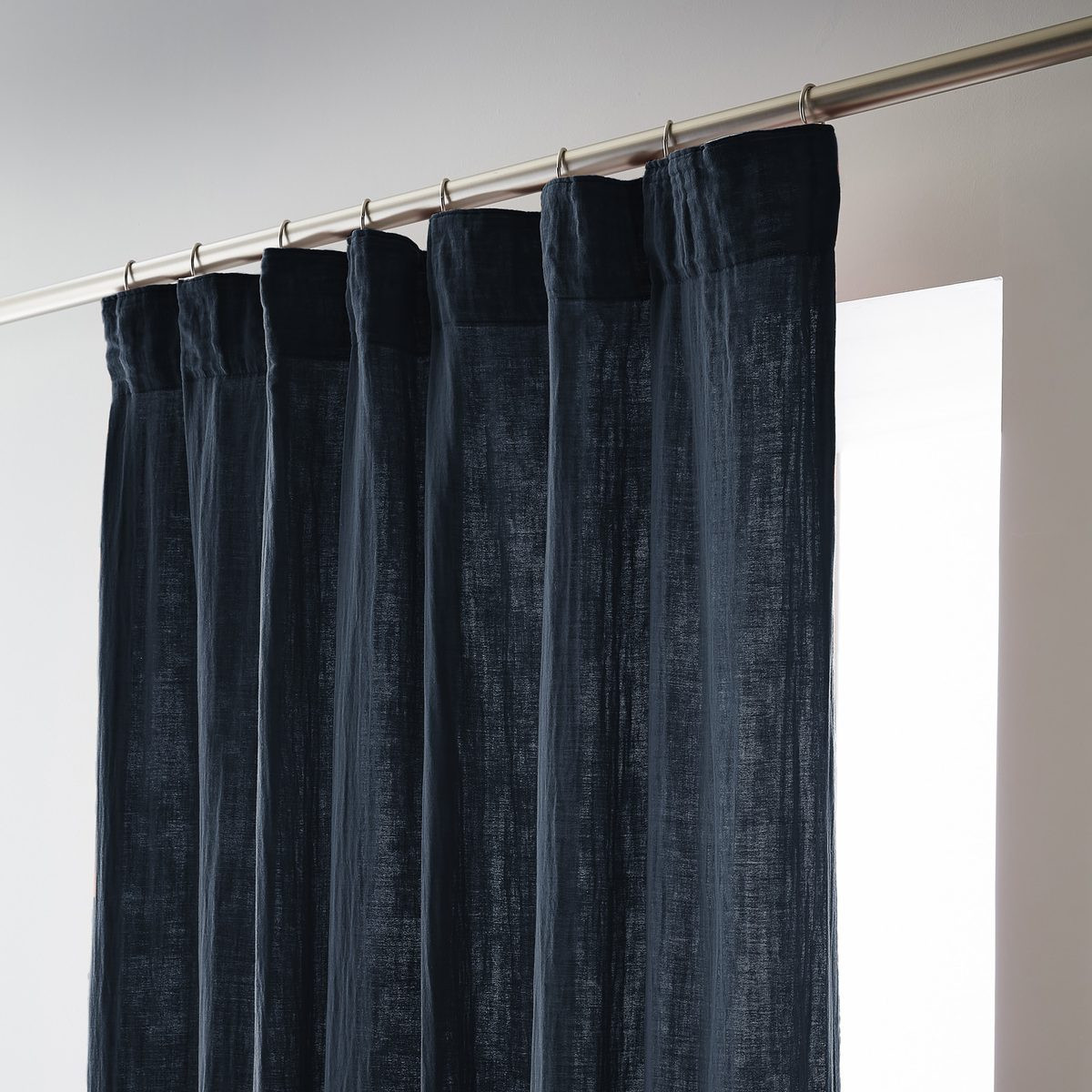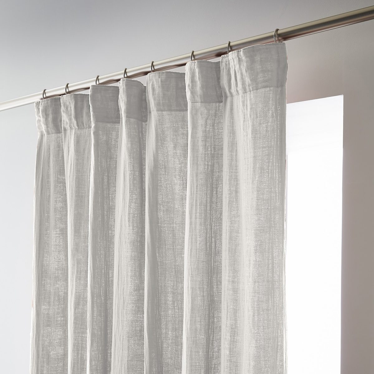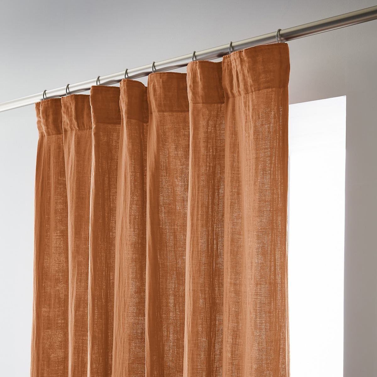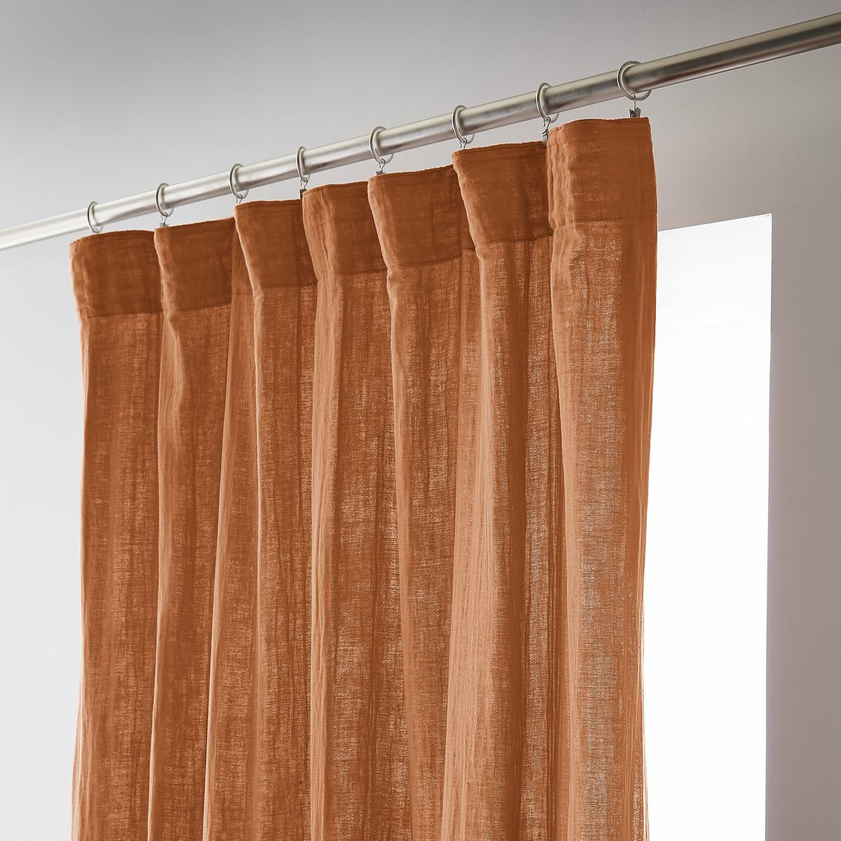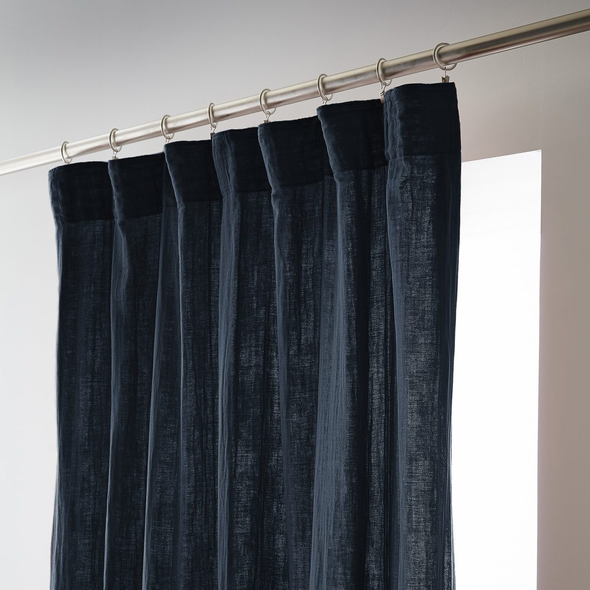 Installation simplifiée : Les anneaux pinces se positionnent facilement sur le rideau puis se glissent sur la tringle — aucun perçage, aucun système complexe, possibilité d'ajustement in situ pour optimiser le drapé selon l'esthétique souhaitée.