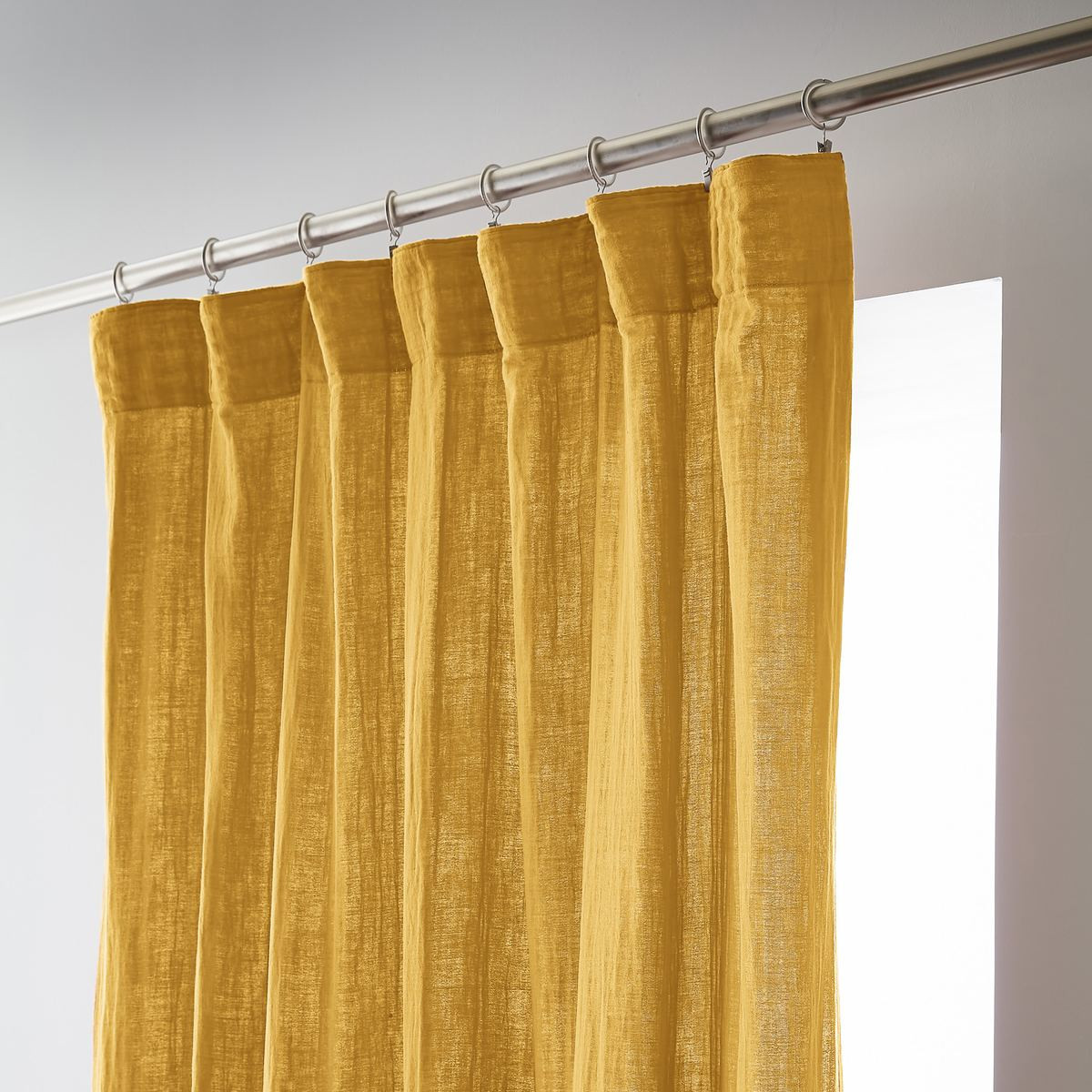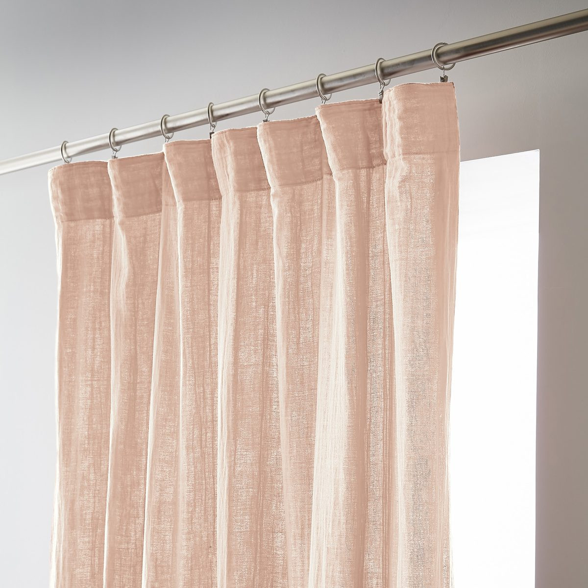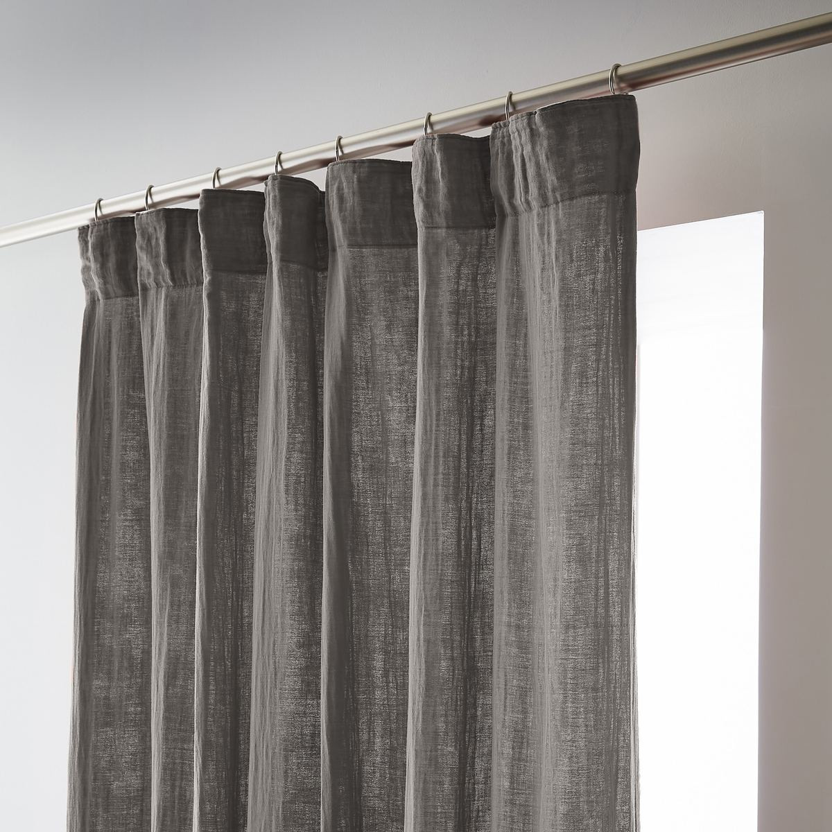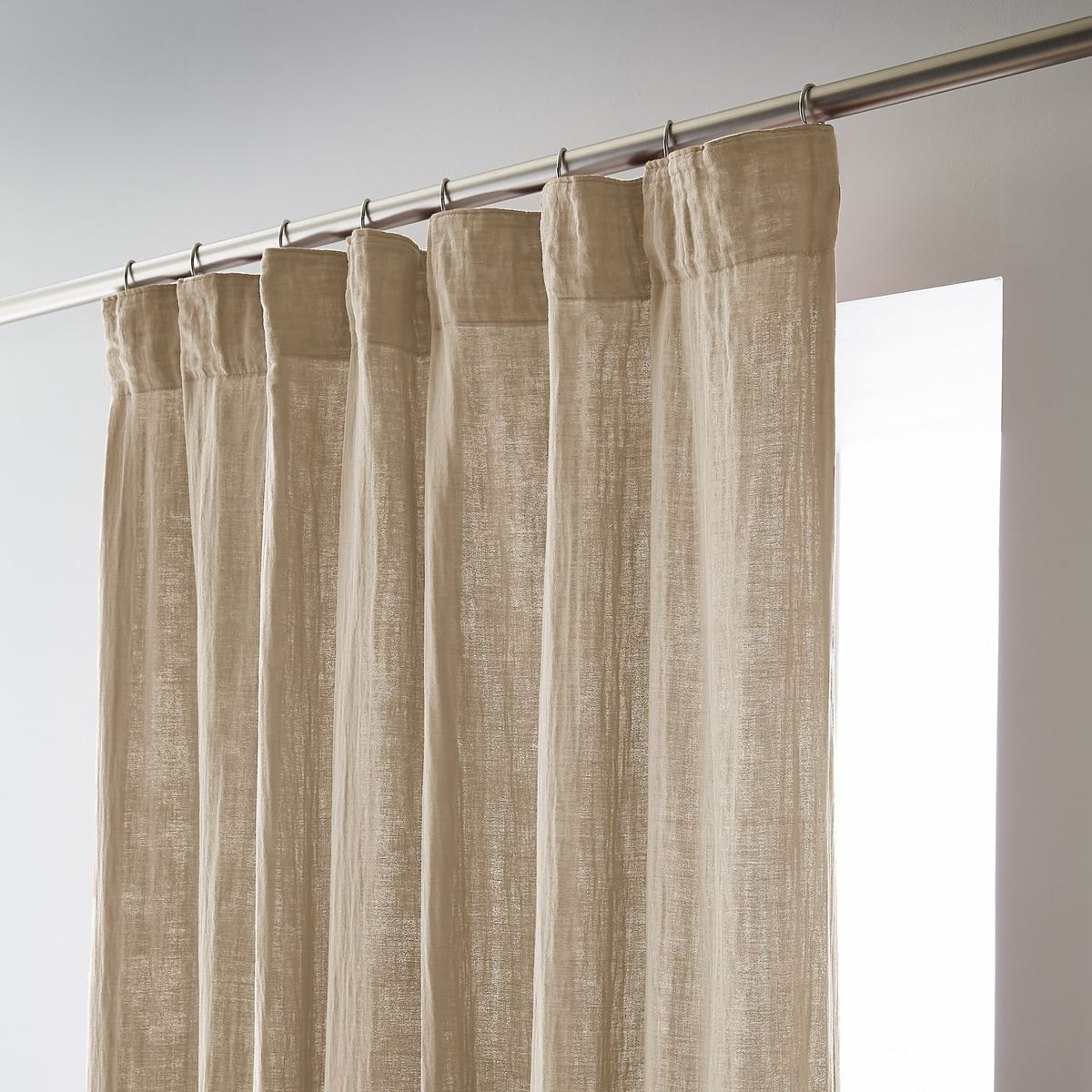 Installation simplifiée : Les anneaux pinces se positionnent facilement sur le rideau puis se glissent sur la tringle — aucun perçage, aucun système complexe, possibilité d'ajustement in situ pour optimiser le drapé selon l'esthétique souhaitée.