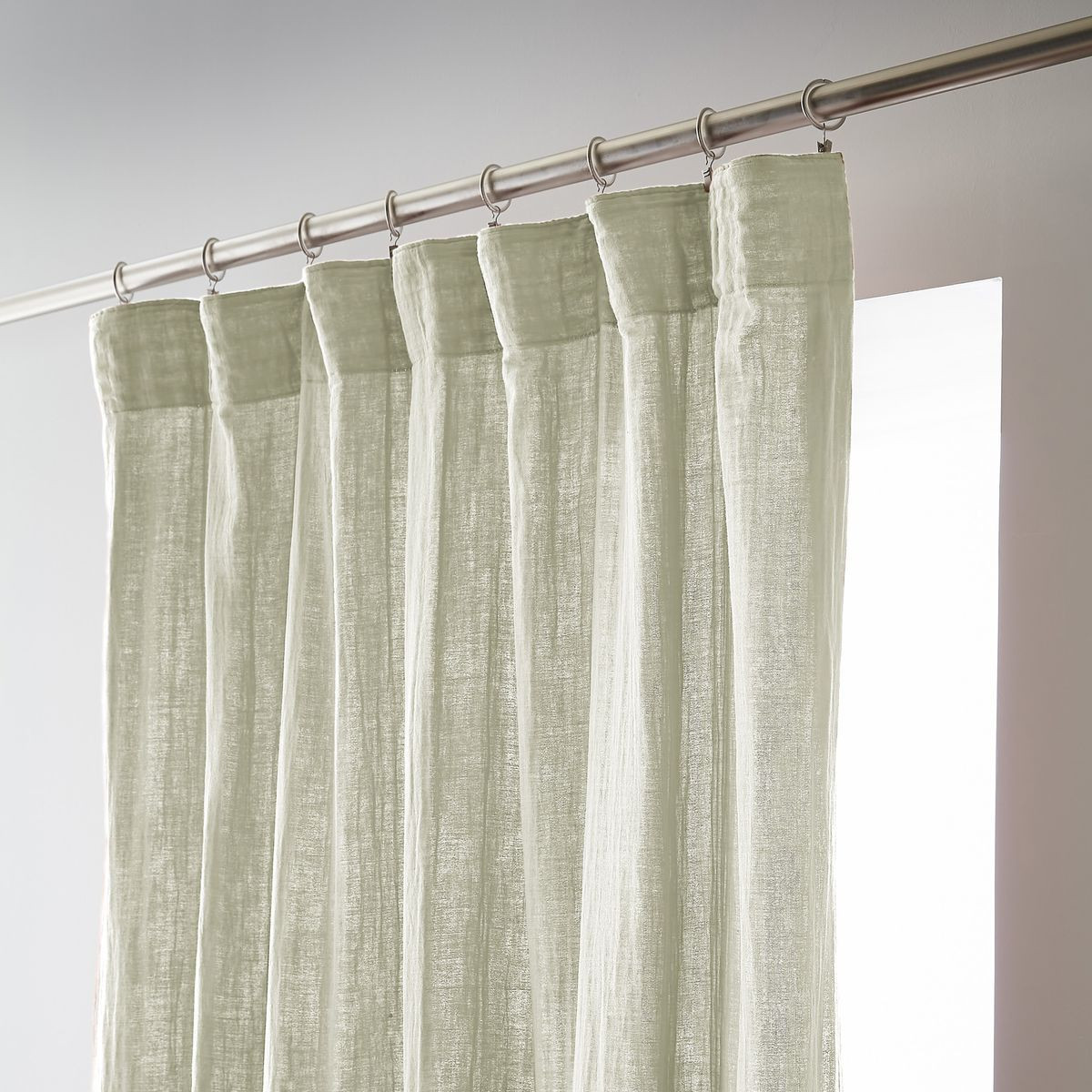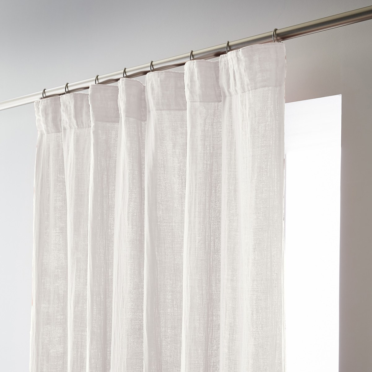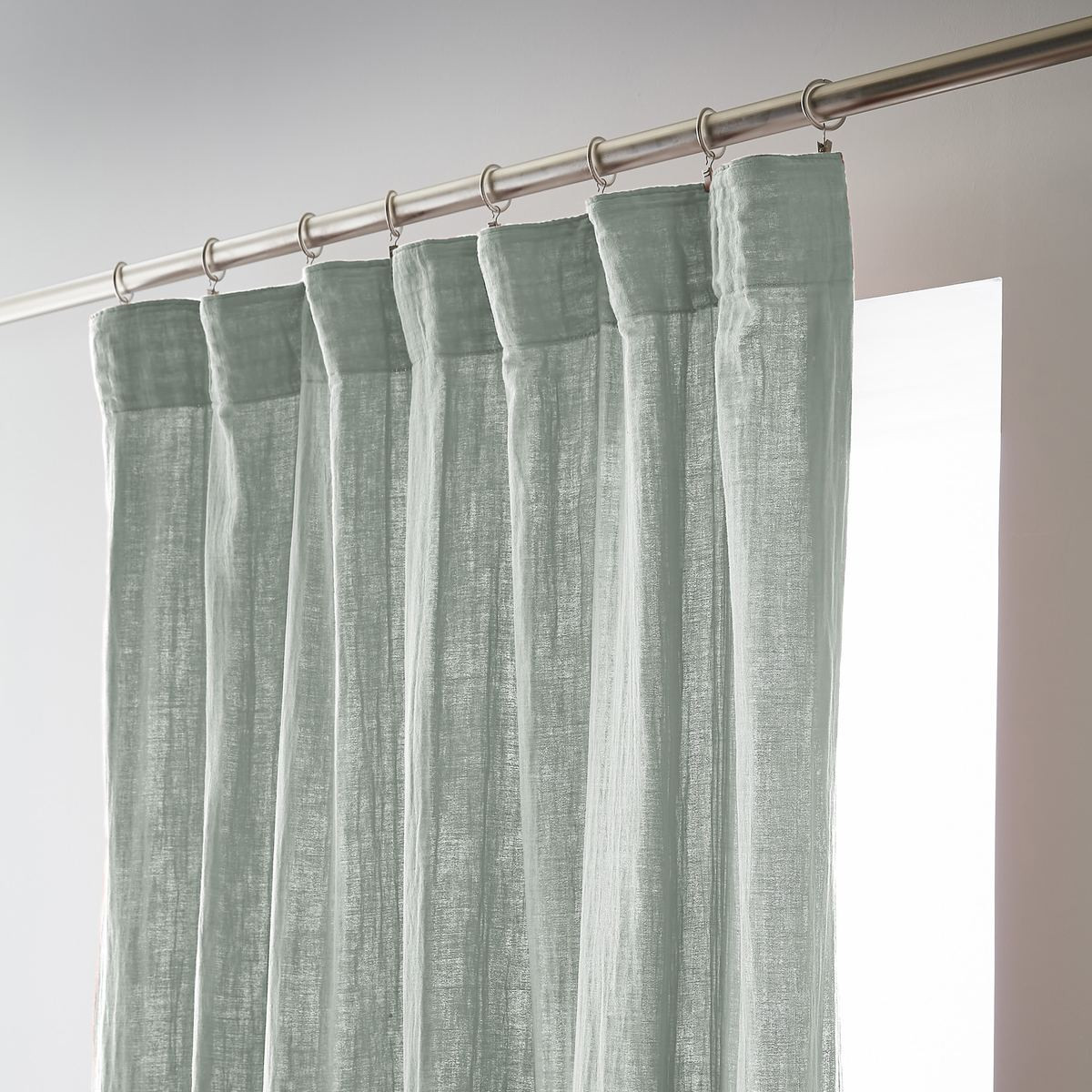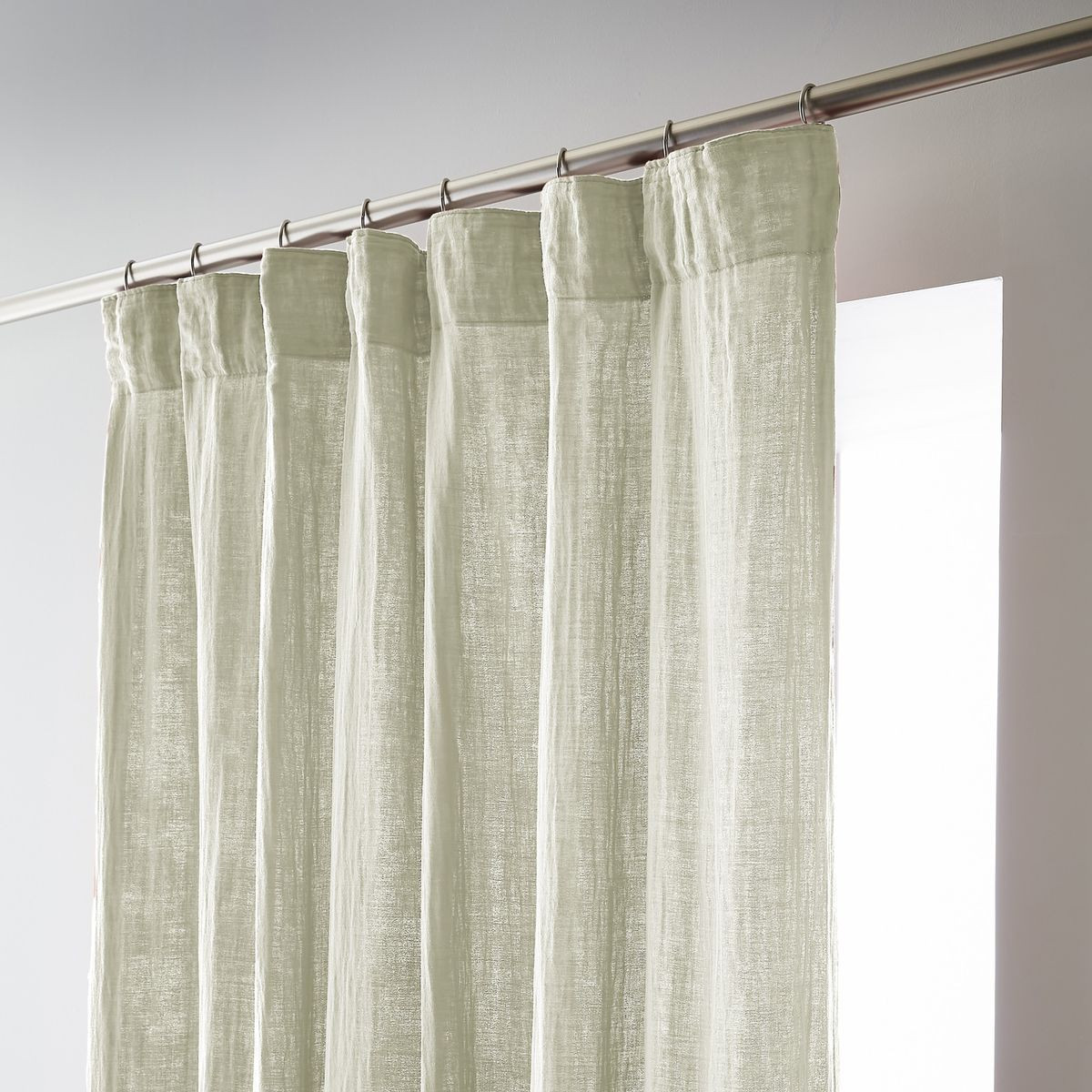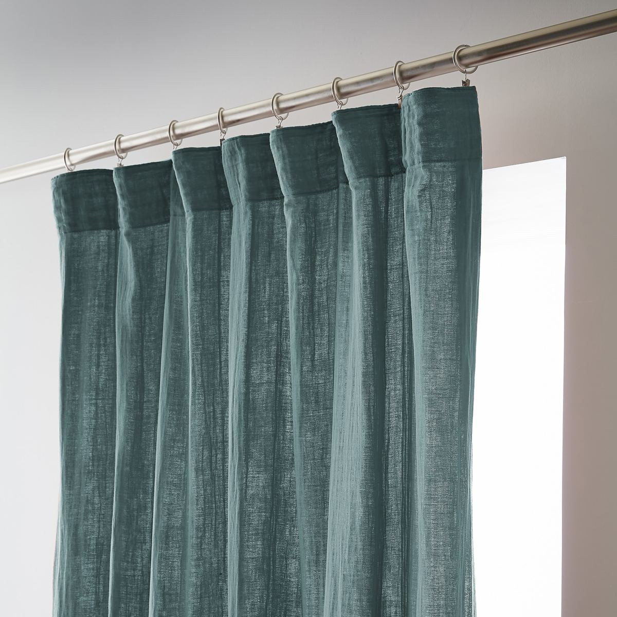 Installation simplifiée : Les anneaux pinces se positionnent facilement sur le rideau puis se glissent sur la tringle — aucun perçage, aucun système complexe, possibilité d'ajustement in situ pour optimiser le drapé selon l'esthétique souhaitée.