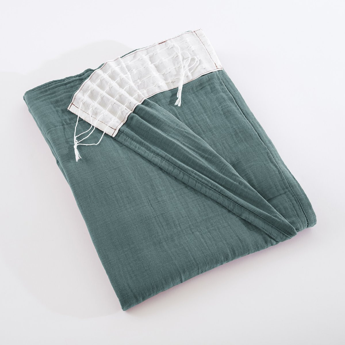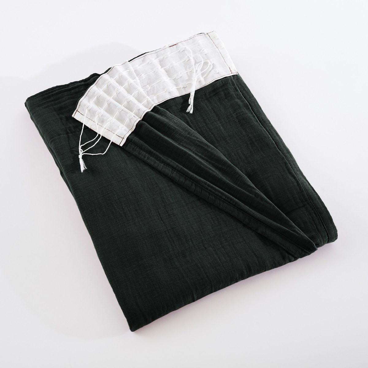 Point bourdon ton sur ton : cohérence collection : Cette finition unifie visuellement avec tous les textiles GAIA — même signature esthétique de la chambre aux fenêtres, même exigence qualitative, même attention aux détails qui révèle la pensée globale de la collection.