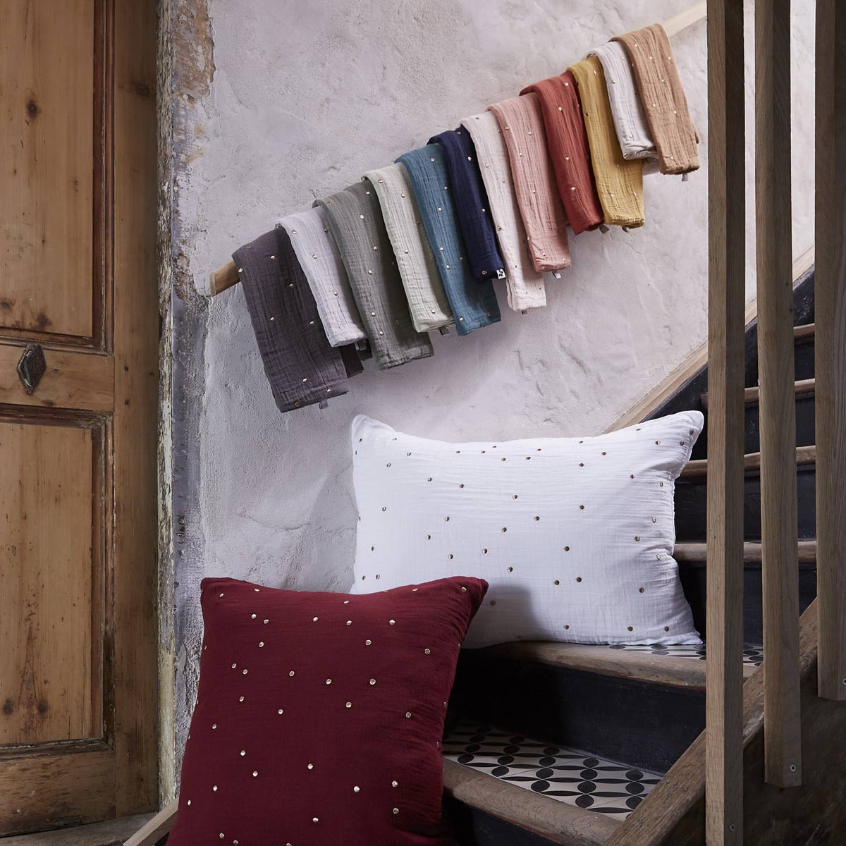 Ajoutez une touche de raffinement et de douceur à votre linge de lit avec la taie d'oreiller Gaïa Chic de L'EFFET PAPILLON. Elle marie l'aspect naturellement décontracté de la gaze de coton à un détail délicatement scintillant, pour une ambiance bohème-chic irrésistible.
