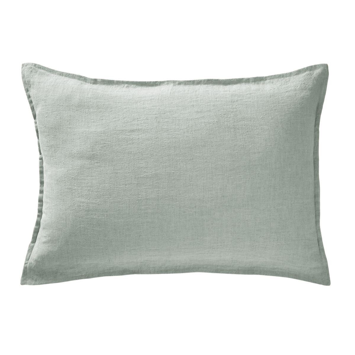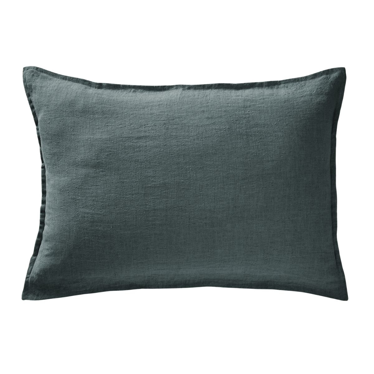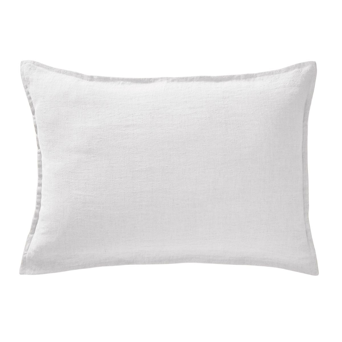 Laissez-vous séduire par la présence sobre et naturelle du lin lavé posé sur un oreiller : une matière qui se froisse avec caractère, dont la trame visible révèle la fibre à la lumière et qui gagne en souplesse à chaque lavage. Le volant plat cousu sur trois côtés donne à la taie SOLINE un cadrage discret et structurant — un encadrement fin qui souligne la forme de l'oreiller sans l'alourdir, dans le même lin lavé que le corps de la taie.