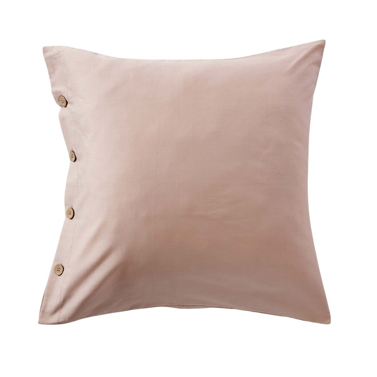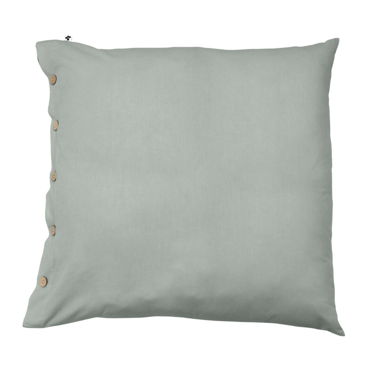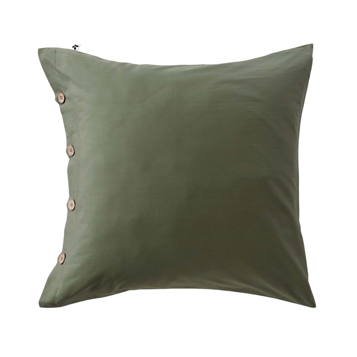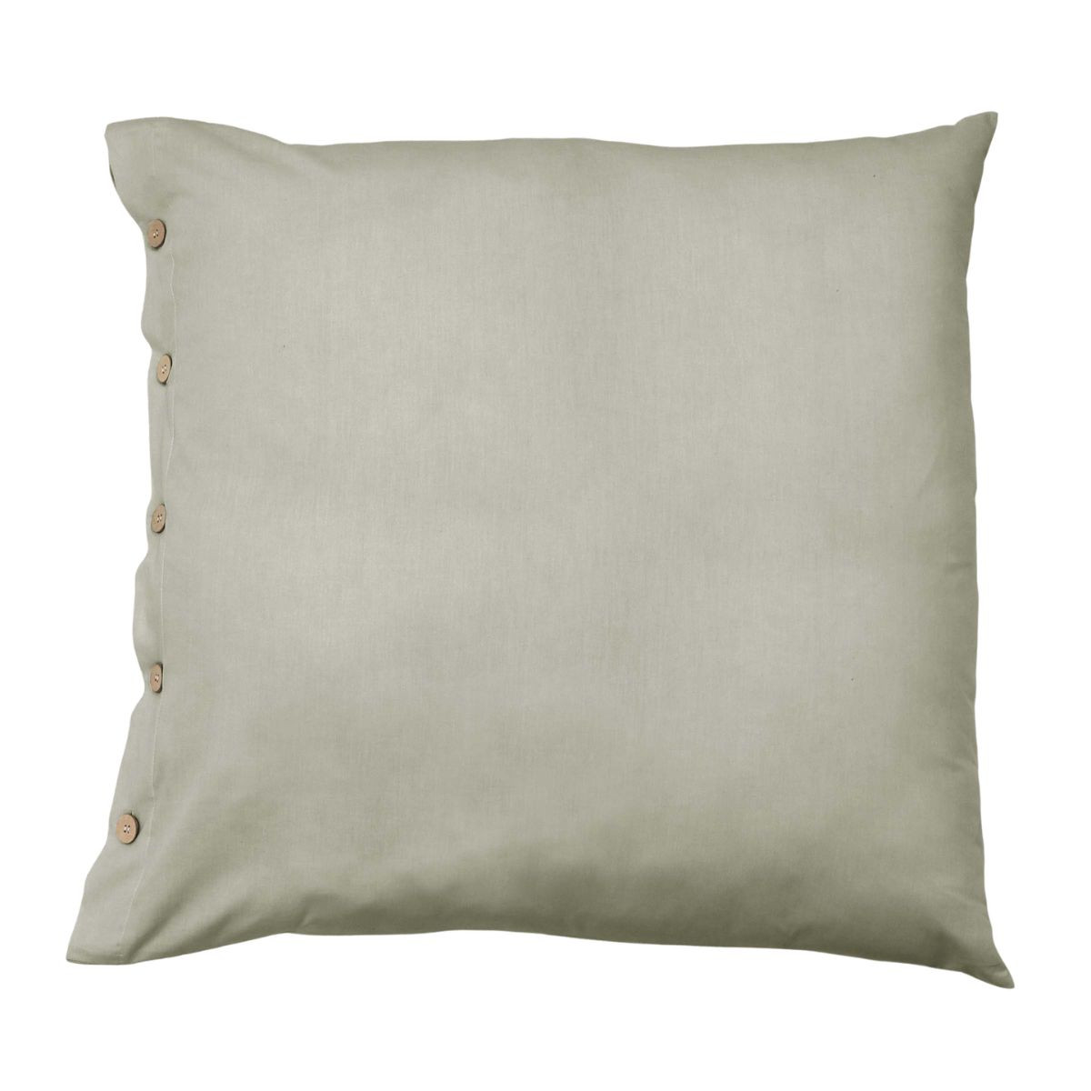 Le volant plat, caractéristique de la collection, encadre la taie d'un bord net et posé qui lui donne sa silhouette signature. La fermeture se fait par boutonnières et boutons coco — trois boutons pour les formats 50×70 cm, quatre boutons pour les formats 65×65 cm et 80×80 cm — un système qui évite les fermetures à glissière au contact de la peau et ajoute une note naturelle immédiatement visible. Trois formats sont proposés : 50×70 cm pour les oreillers rectangulaires standard, 65×65 cm pour les oreillers carrés classiques, et 80×80 cm pour un format king généreux et volumineux.