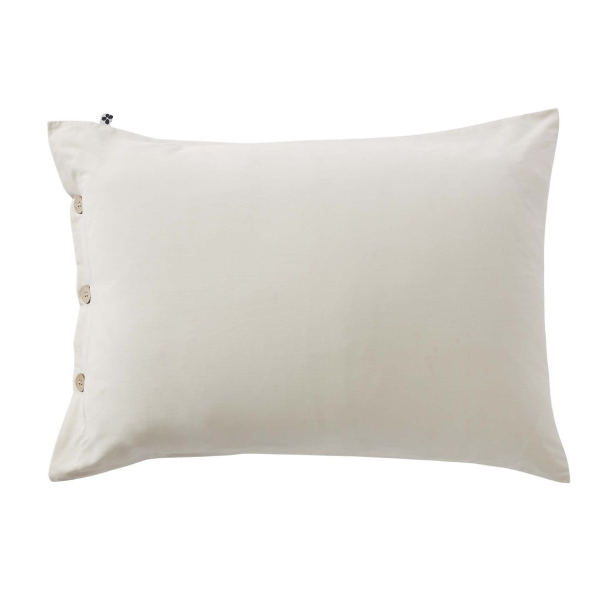 La taie d'oreiller PERRINE est tissée en percale 100 % coton, à 120 fils/cm² (T300), pour une surface lisse, régulière et respirante qui convient aussi bien aux dormeurs qui ont chaud qu'à ceux qui recherchent un linge durable dans le temps.