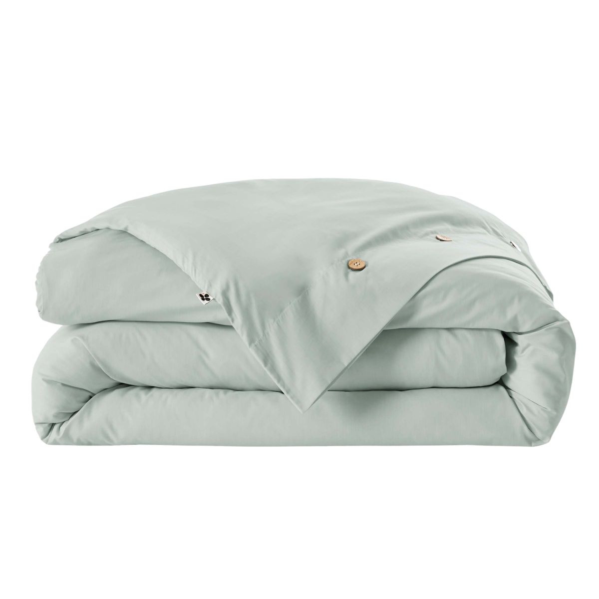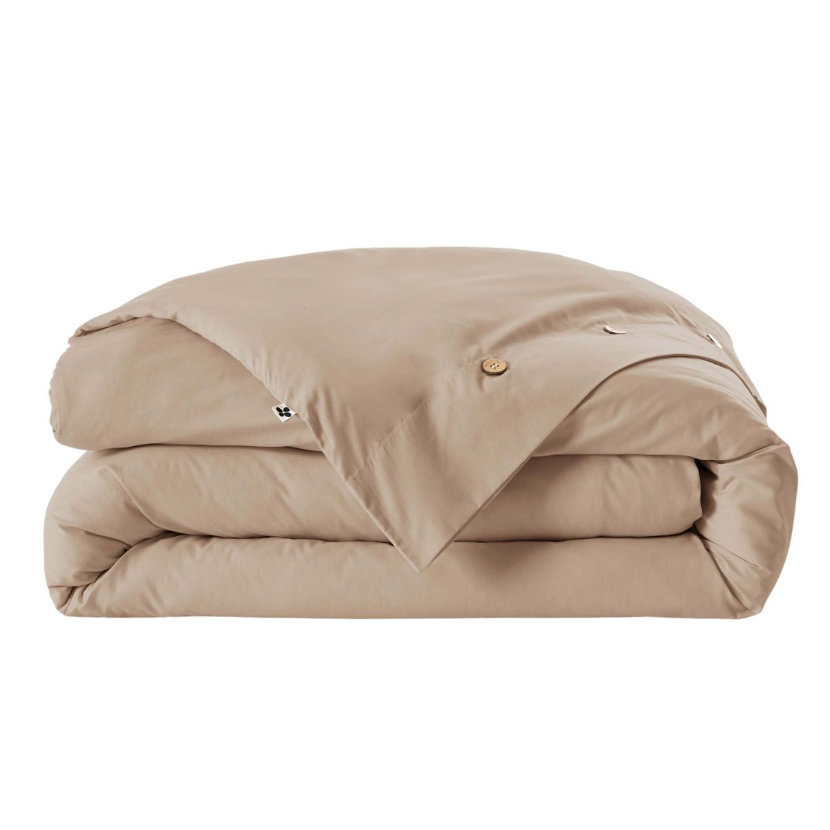 Les boutons coco visibles à l'ouverture de la housse ne sont pas un simple choix esthétique : fabriqués à partir de noix de coco, ils allient résistance naturelle au lavage et chaleur visuelle. Leur teinte brun-caramel naturelle s'accorde avec l'ensemble des huit coloris de la collection, des plus clairs aux plus soutenus, sans jamais détoner.