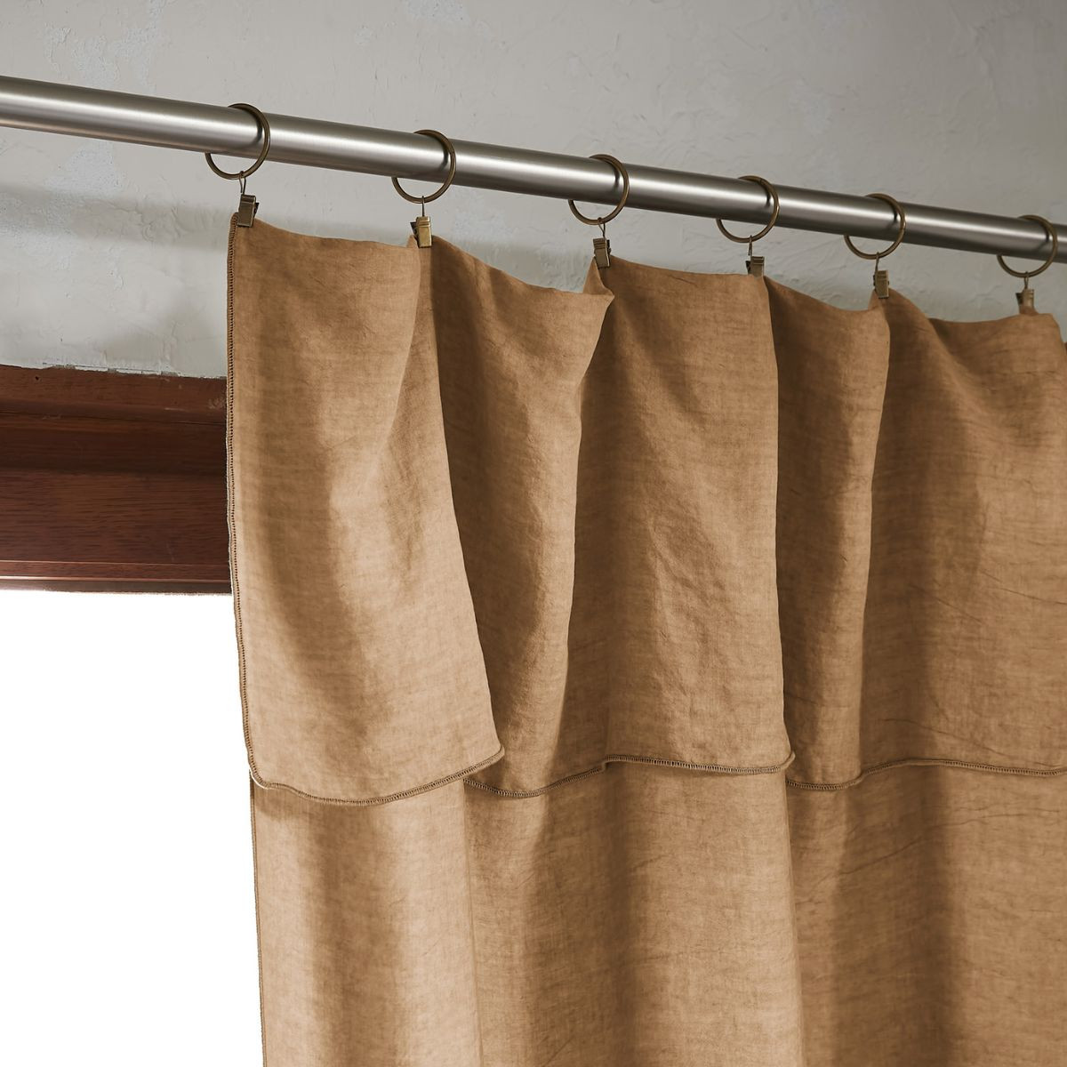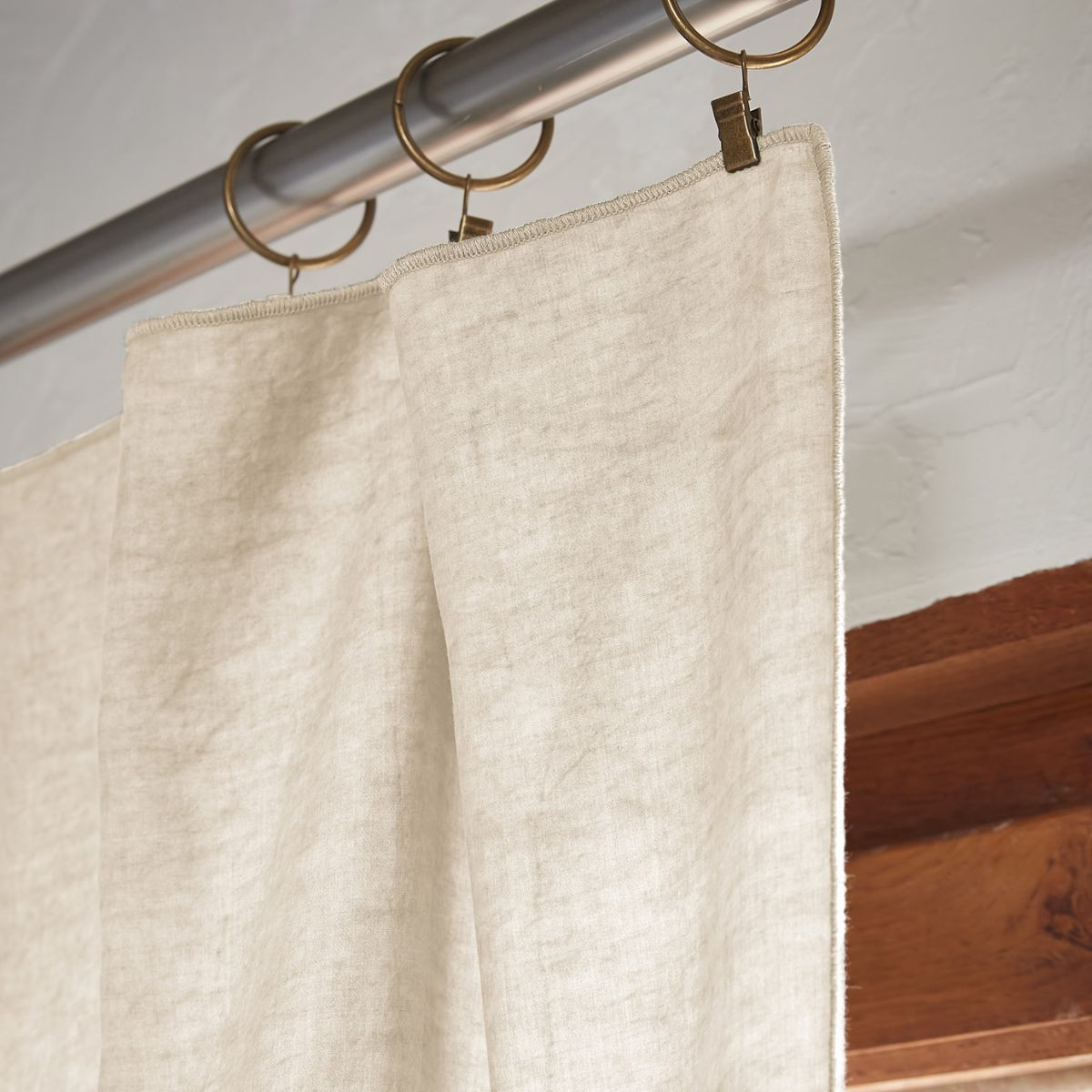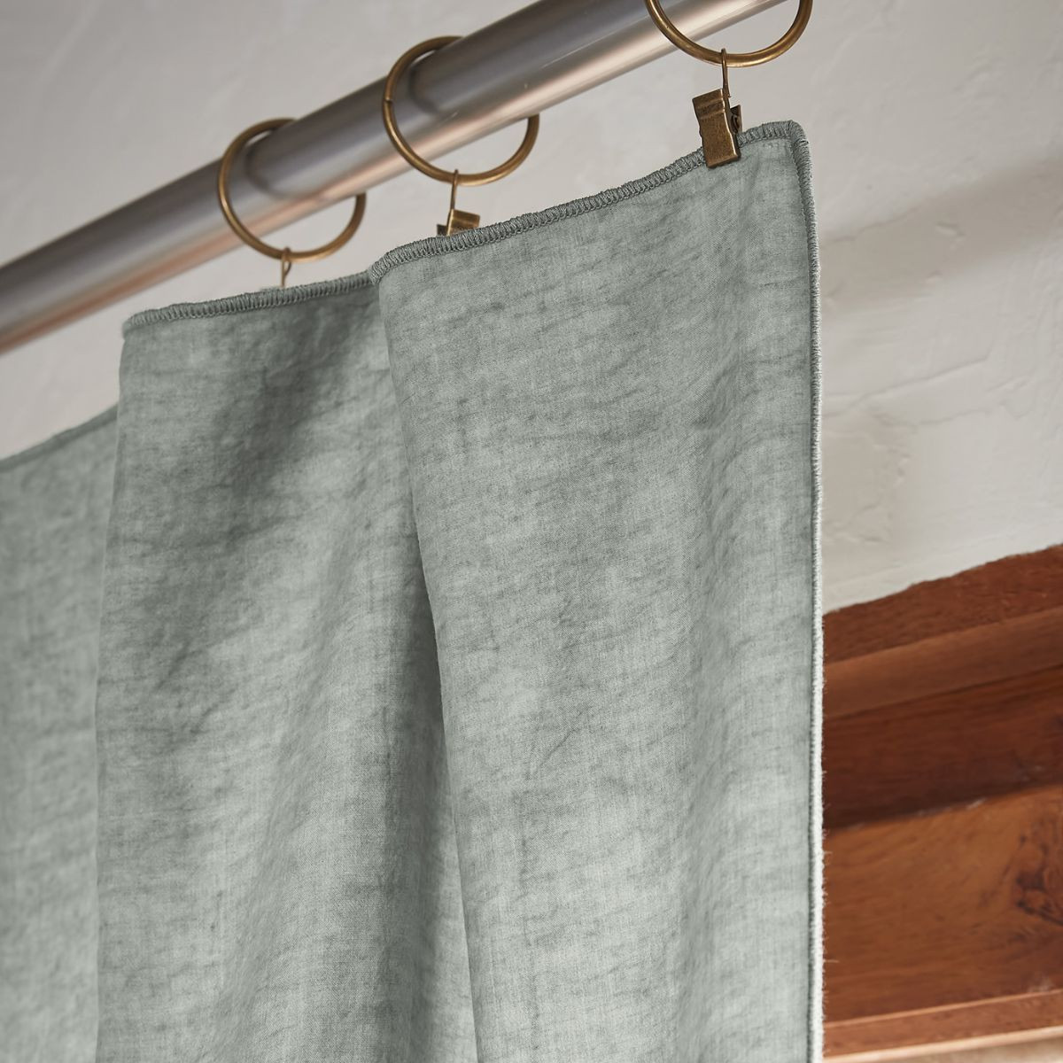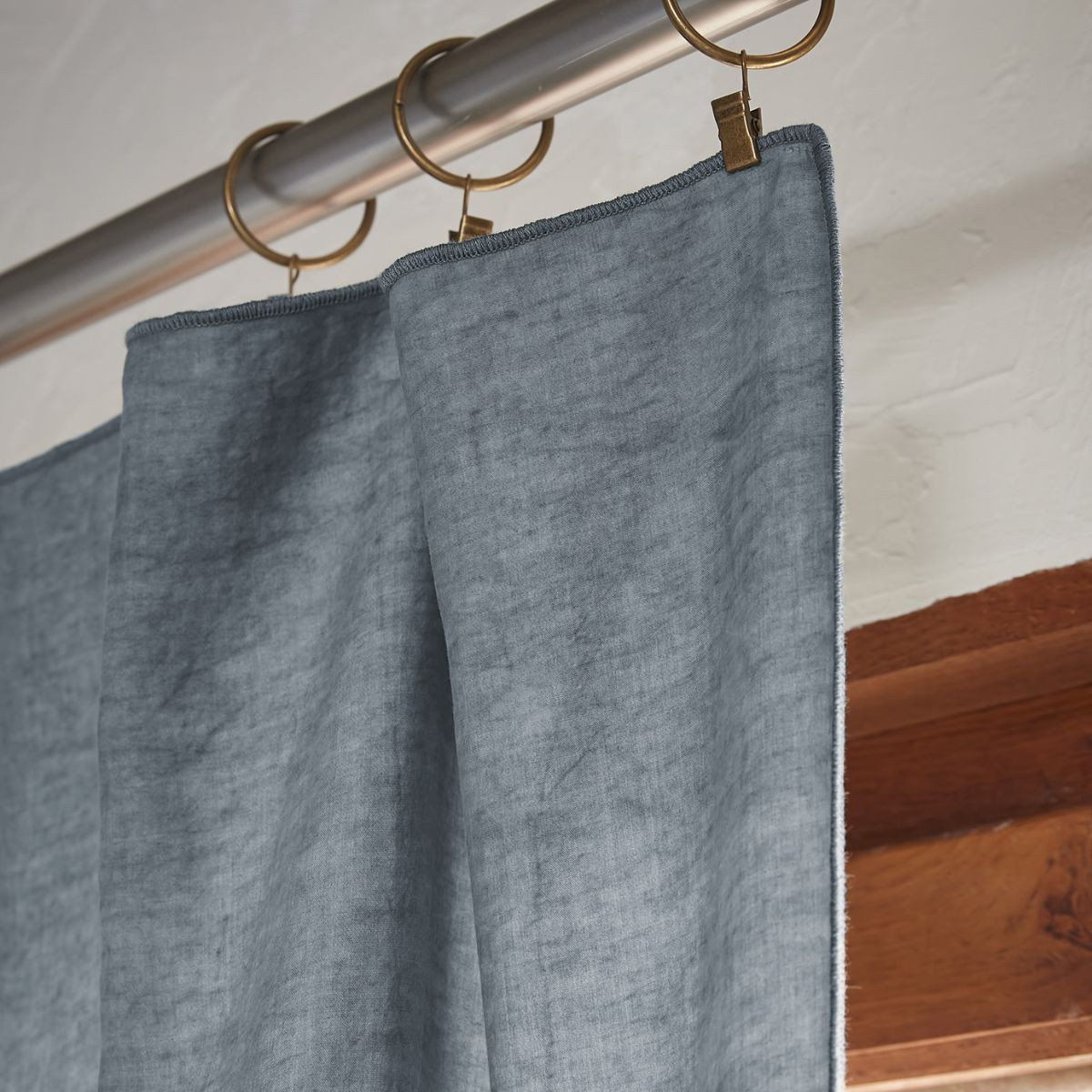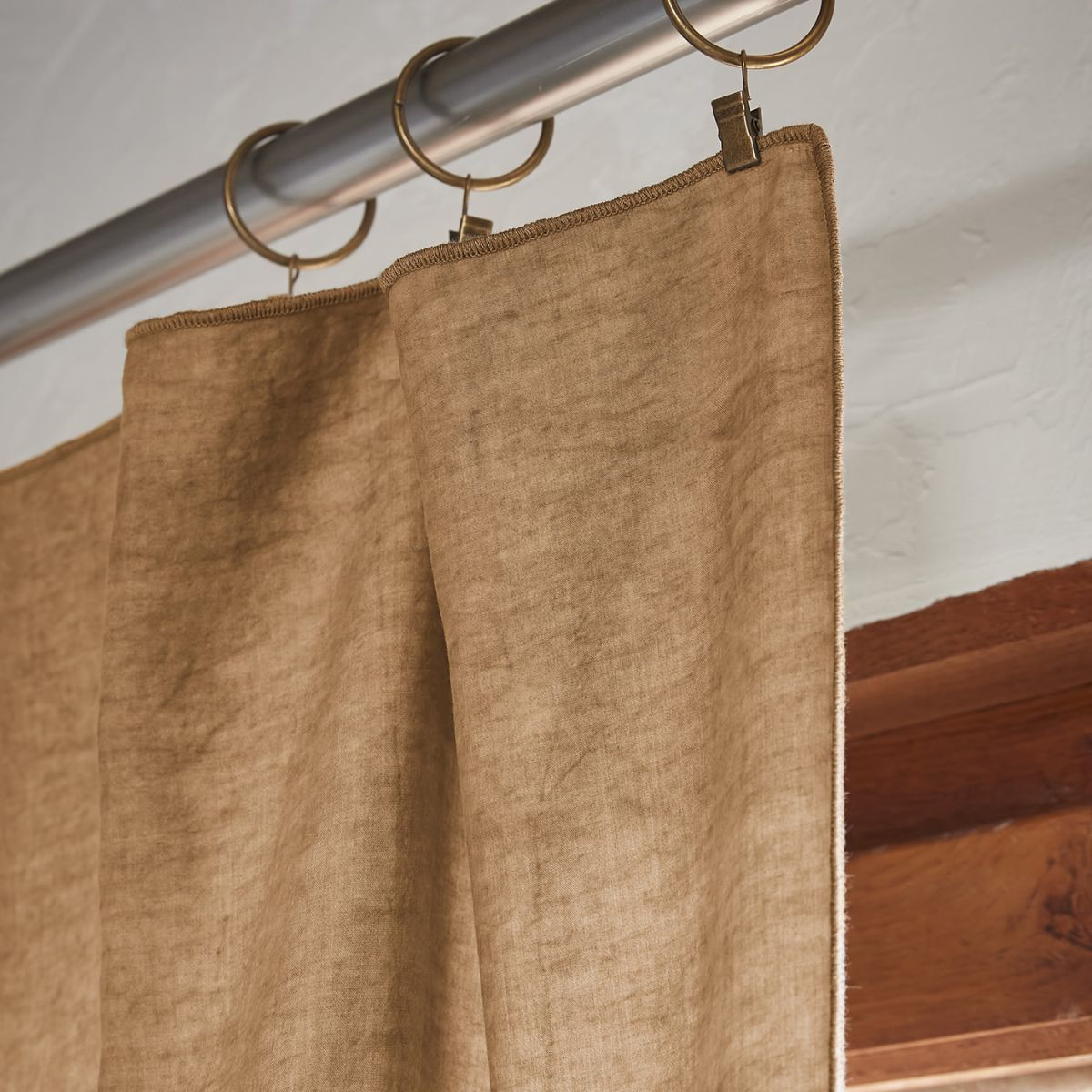Pourquoi choisir le lyocell Tencel™ pour ses rideaux plutôt que le lin ou le coton ? Le lin offre un tombé naturel mais reste raide et peu fluide à froid — il demande souvent un repassage pour retrouver sa tenue. Le lyocell lavé, lui, se froisse de façon douce et organique, formant des plis amples qui bougent avec la lumière et ne nécessitent aucune préparation avant accrochage. Le traitement lavé lui confère également une légère vibration de ton — un chiné subtil qui enrichit la profondeur de la teinte selon l'angle de lumière, ce qui le rend particulièrement vivant en intérieur naturel.
