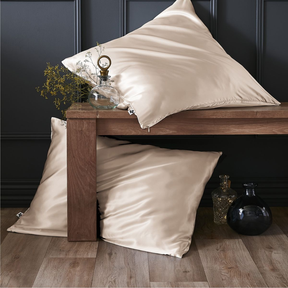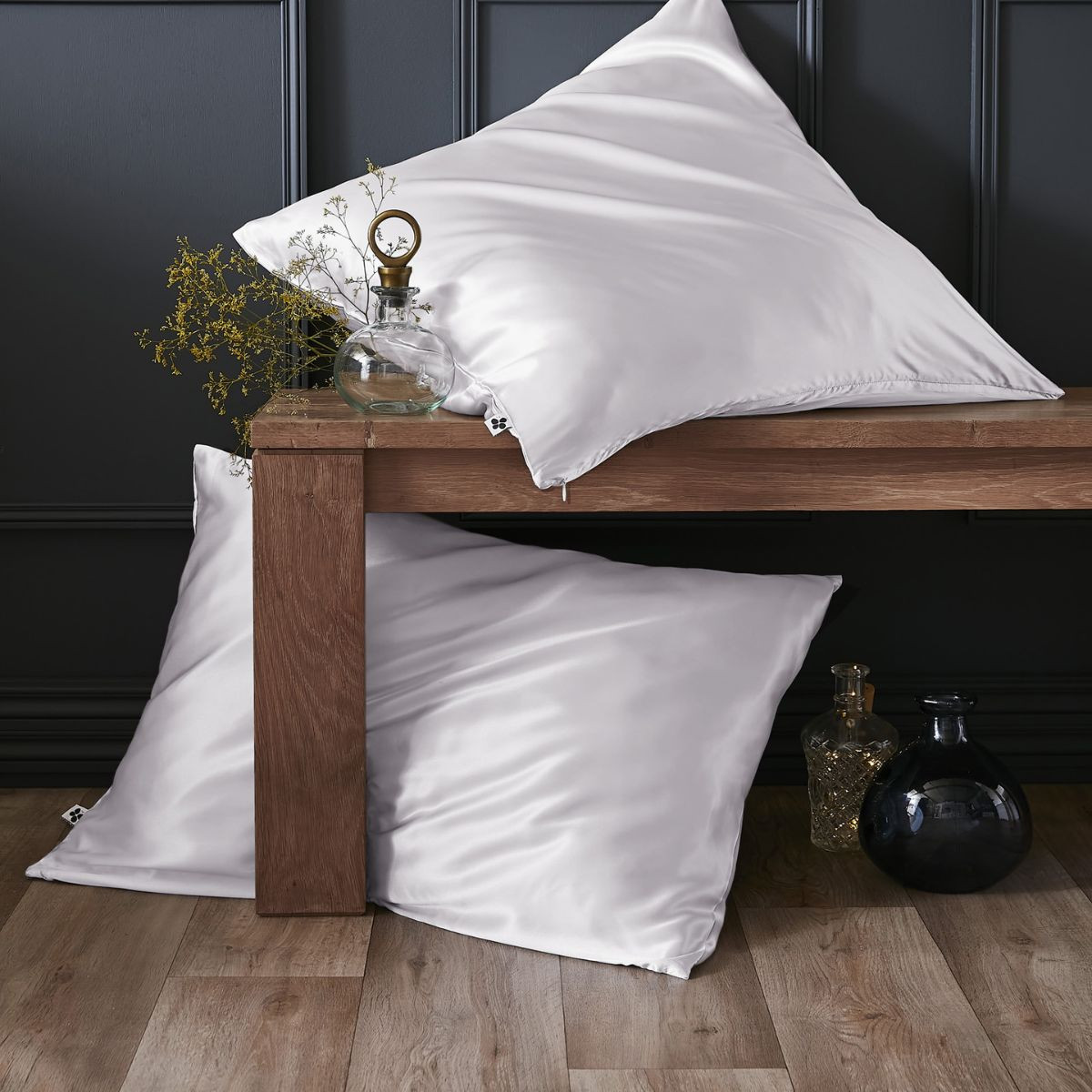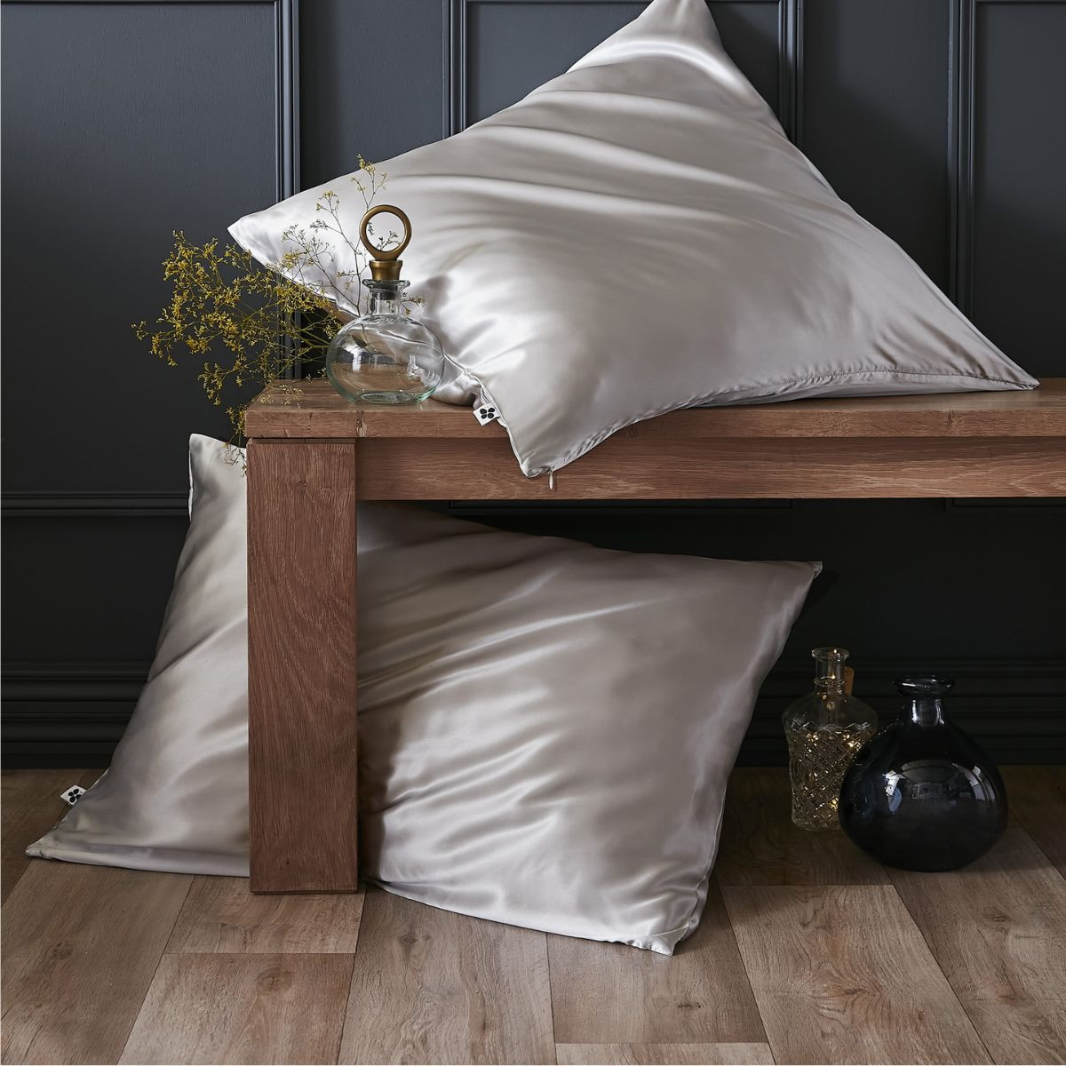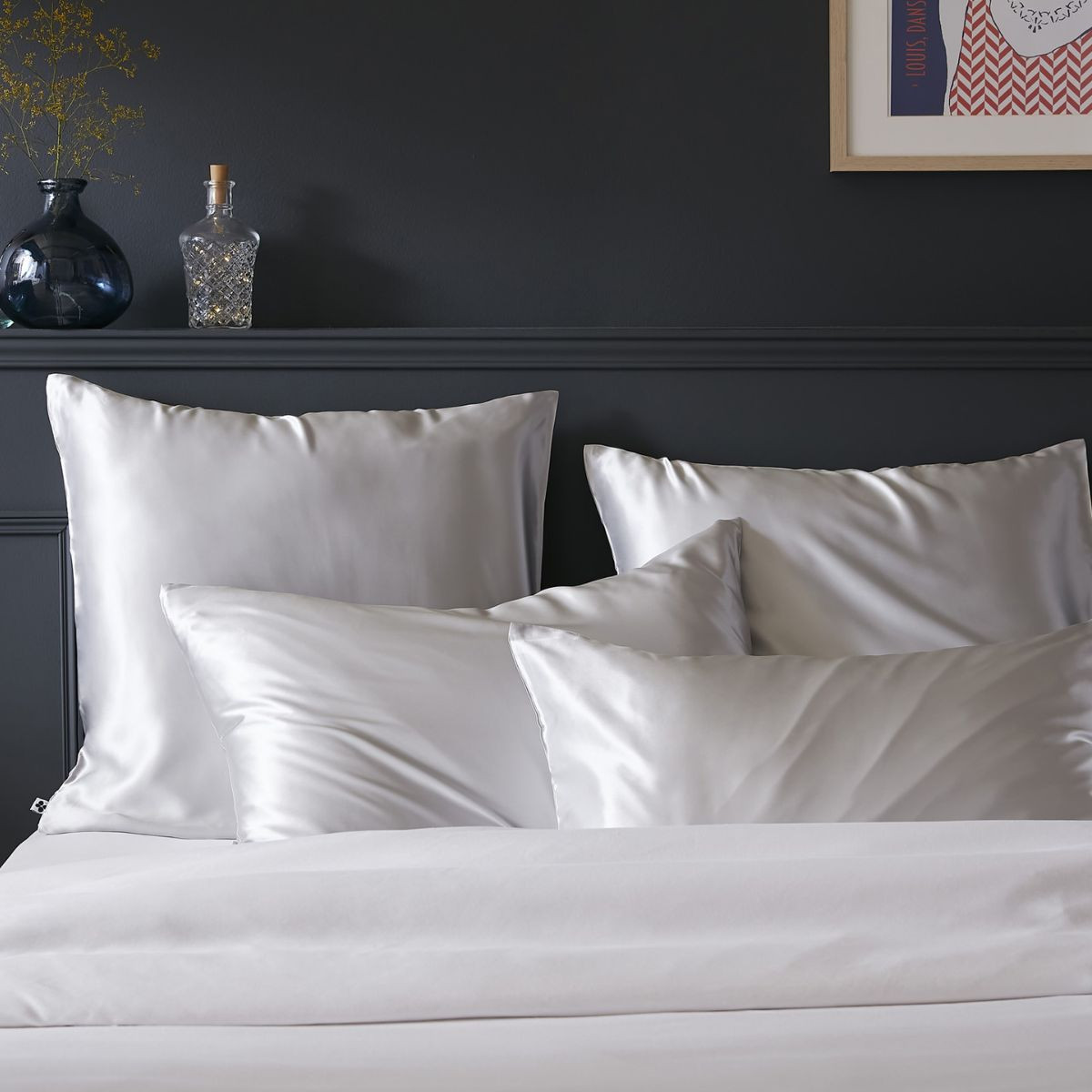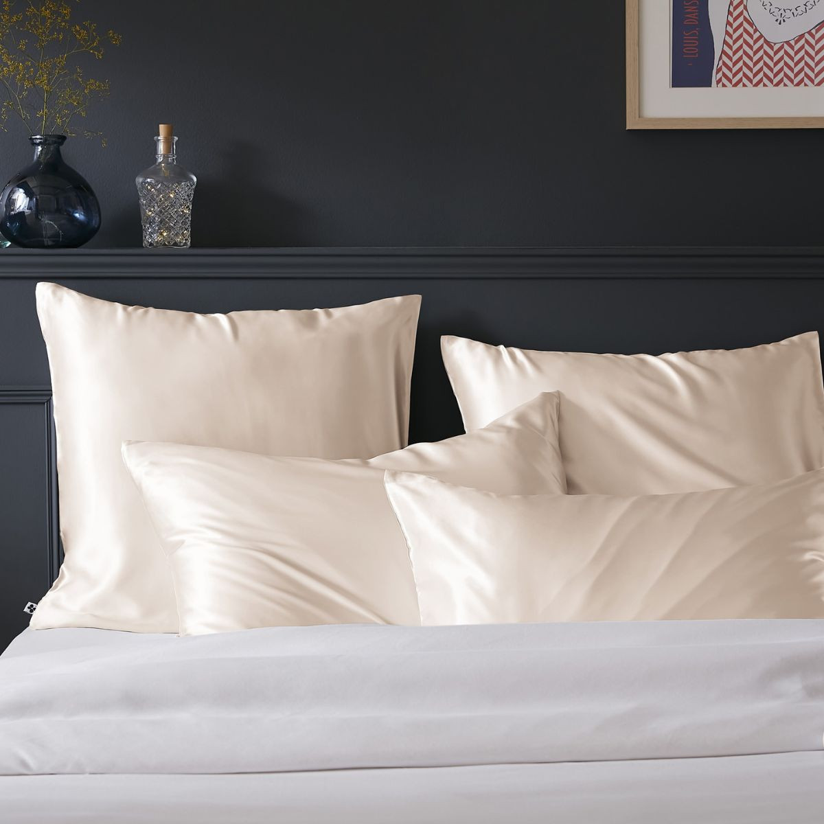 Taie d'oreiller SOANNE de L'Effet Papillon. Soie de mûrier 100% 19 momme 5A. 50×70, 63×63 et 80×80 cm. Dormez dans un écrin de douceur naturelle.