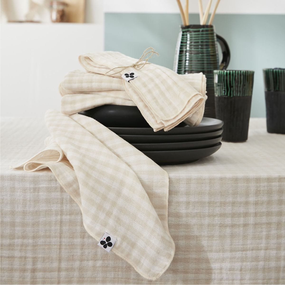 Torchons VICKIE de L'Effet Papillon. Double gaze coton 100% 125 g/m². Lot de 2, 50×70 cm. Complétez votre art de la table vichy avec élégance.