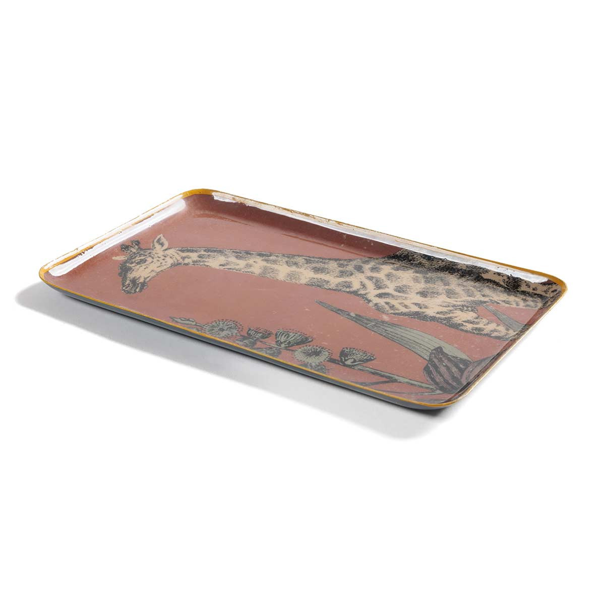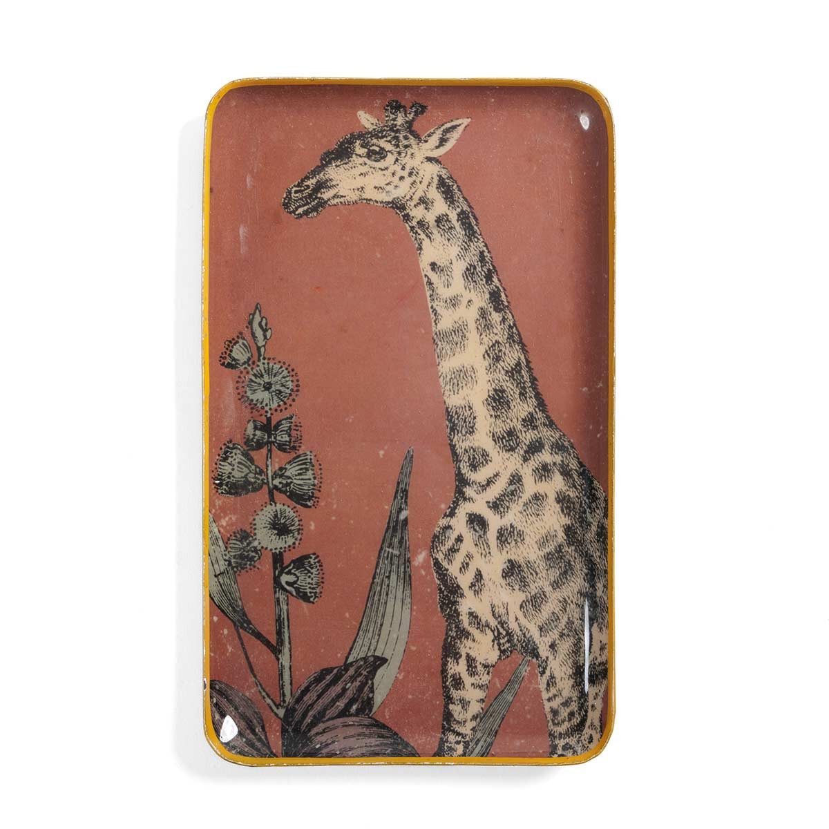 Plateau ATARI Melman Le Monde Sauvage (25x15 cm). Motif girafe stylisée sur fond multicolore. Idéal pour service ou vide-poche. Usage aliments secs uniquement.