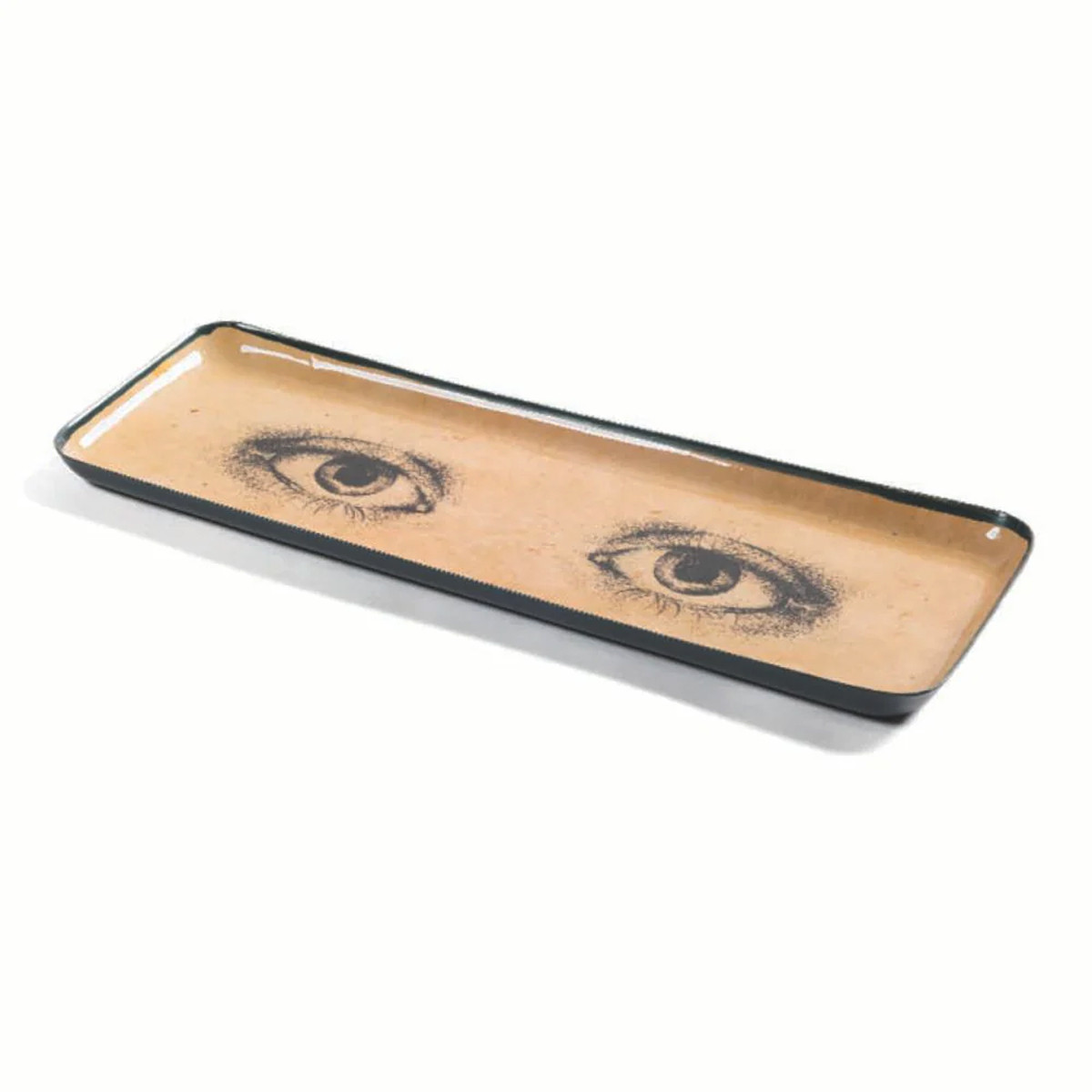 Plateau ATARI Look at Me Le Monde Sauvage (11x33 cm). Motif audacieux : paire d'yeux en style gravure sur fond beige. Idéal pour bougies. Usage aliments secs uniquement.
