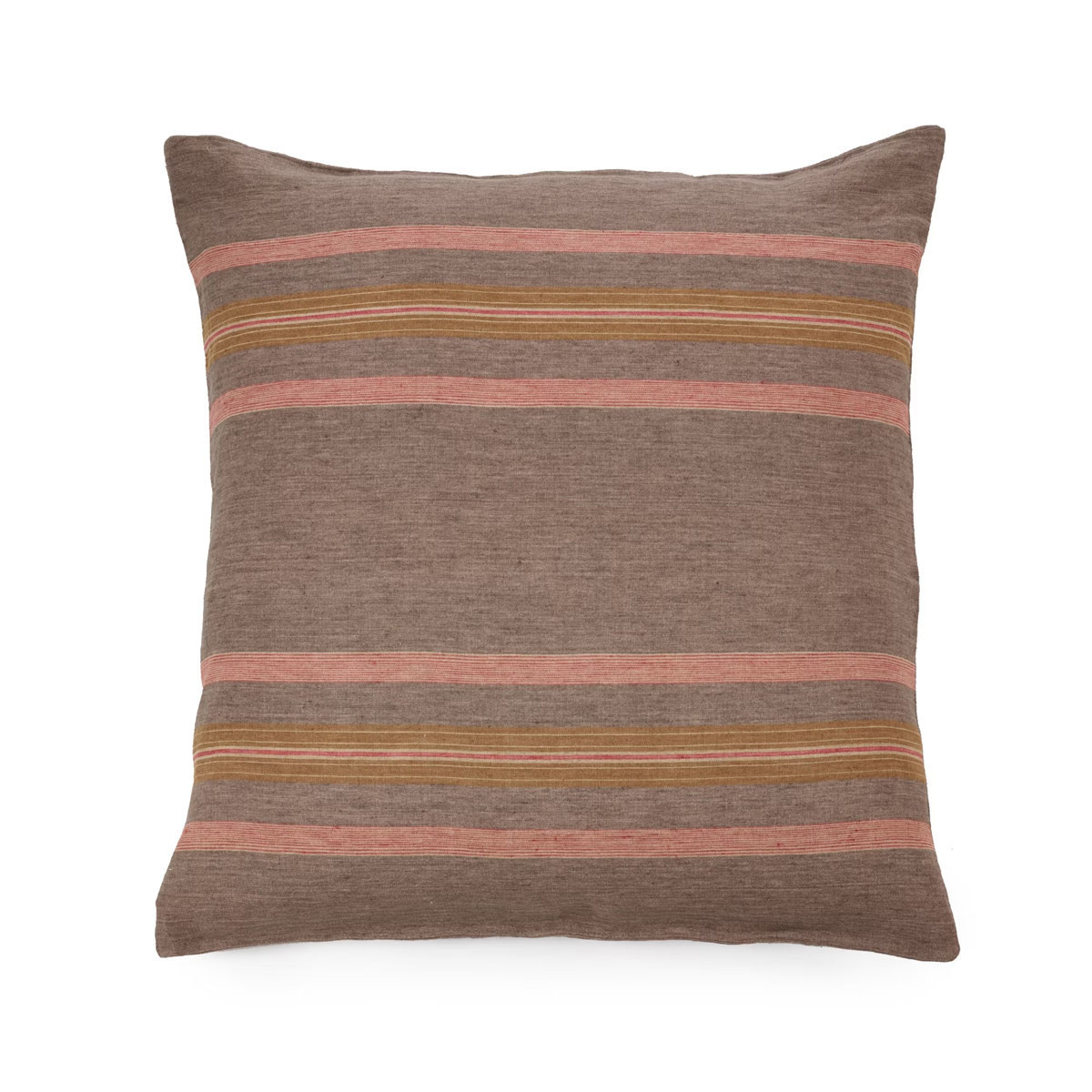 Taie d'Oreiller Nottinghill Libeco 100 % lin lavé. Disponible en motif Stripe (rayures automnales) ou en uni Brown/Brun. Douceur et aspect légèrement froissé.