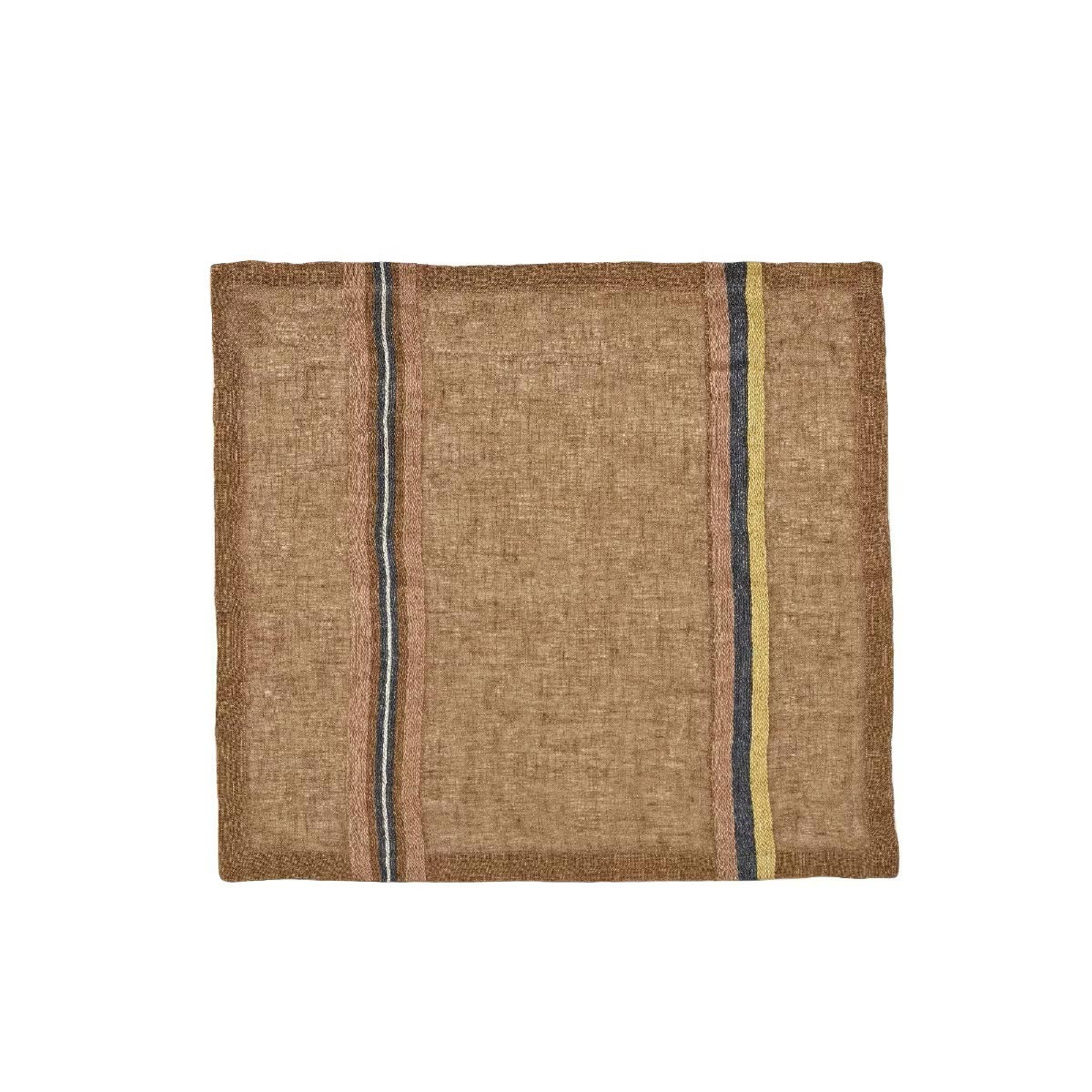 Serviette de Table VIRGINIA Libeco (42x42 cm). 100 % Lin Masters of Linen, lavé. Fond Nairobi Bronze avec rayures moutarde, bleu marine et vieux rose. Élégante et polyvalente.