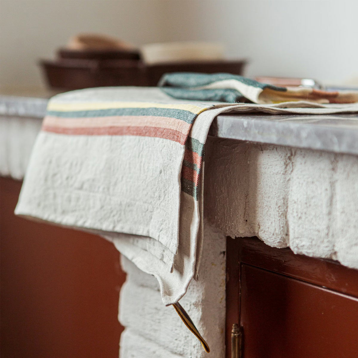 Torchon Trévise Haomy. Lin et coton. Rayures élégantes. Un accessoire de cuisine à la fois pratique, absorbant et décoratif pour un intérieur soigné.