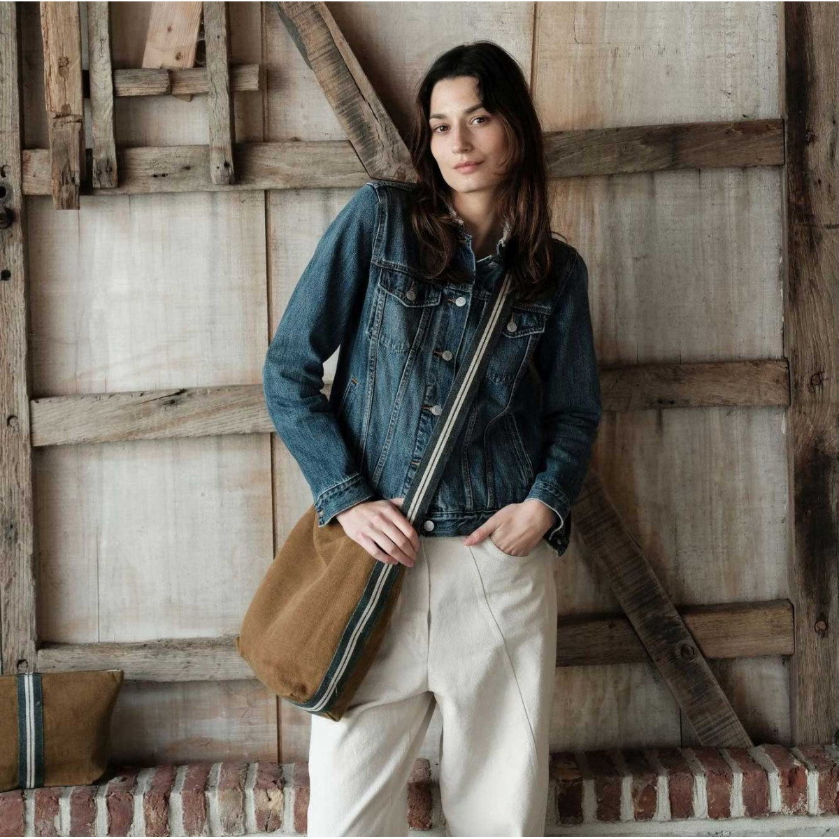 Sac bandoulière Miles Libeco. Lin pur stonewash (590 g/m²) couleur chêne brun. Épais, robuste et doté d'une fermeture à bouton-pression, il allie style et durabilité pour le quotidien.