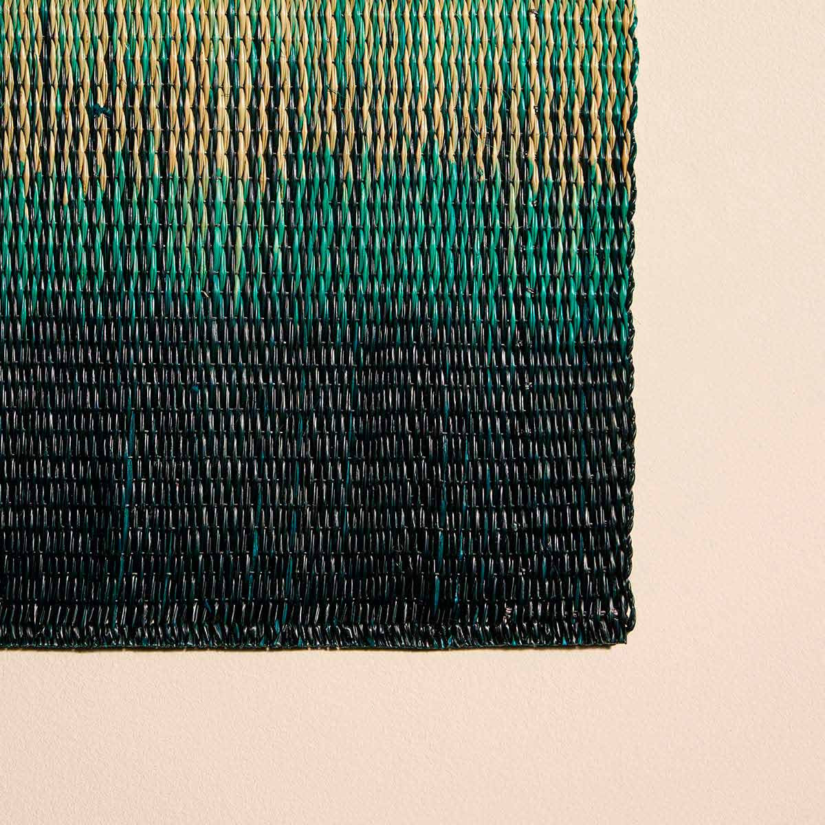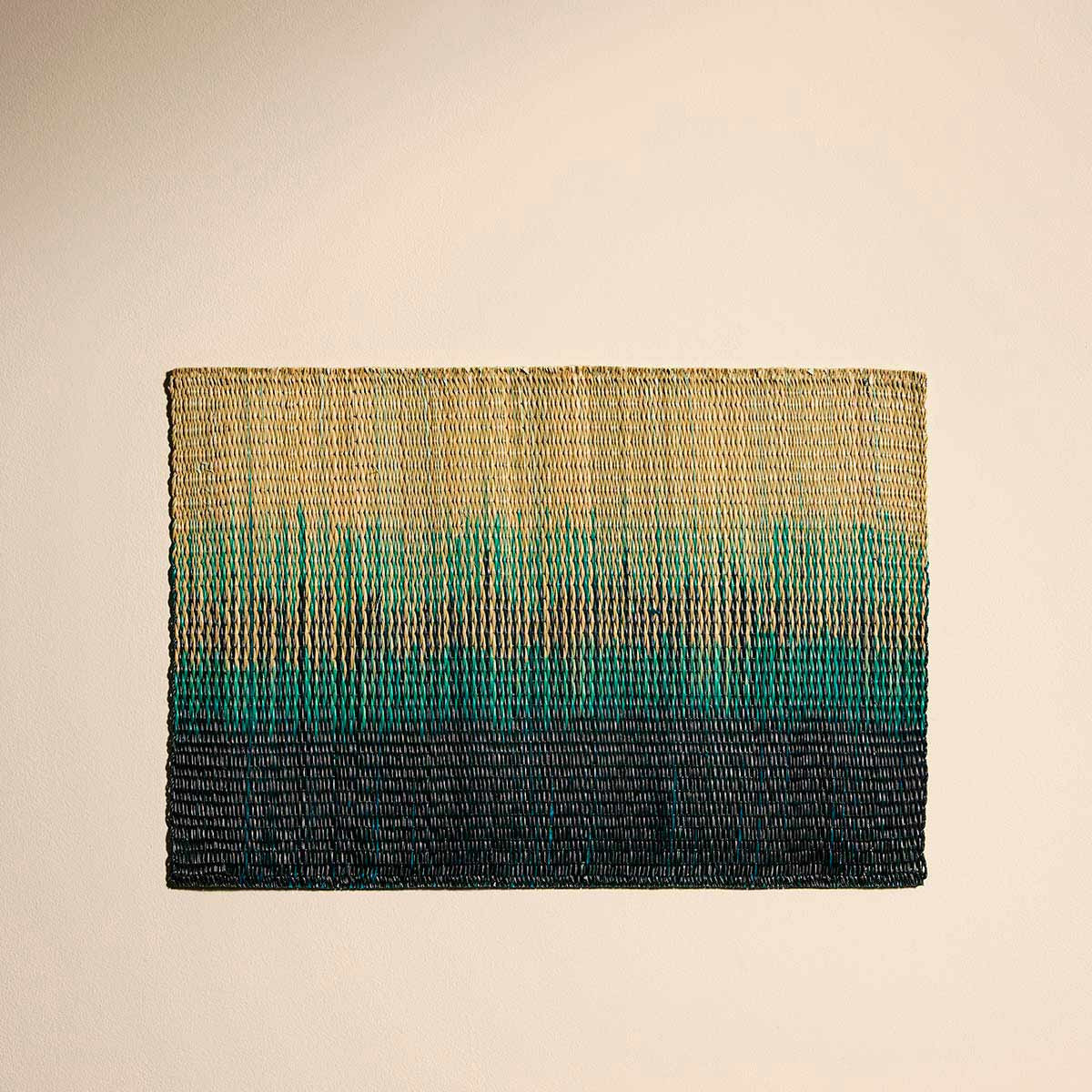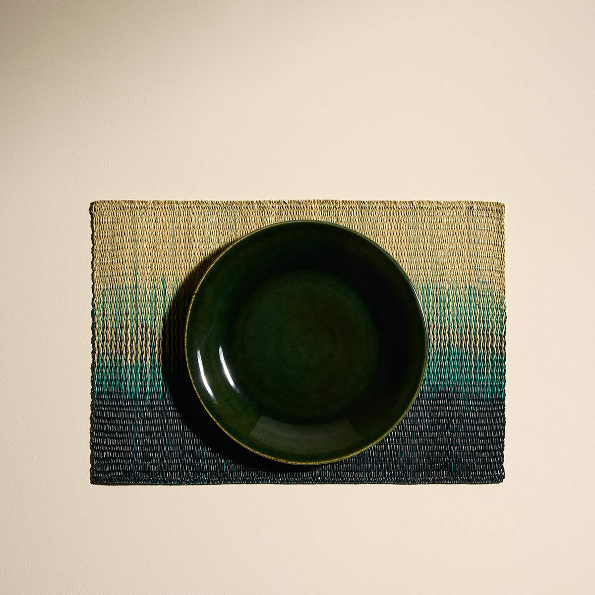 Set de table Orée Maison Sarah Lavoine, fibre naturelle tressée carex, dégradé vert forêt, 45x30 cm. Artisanal, tissé à la main.