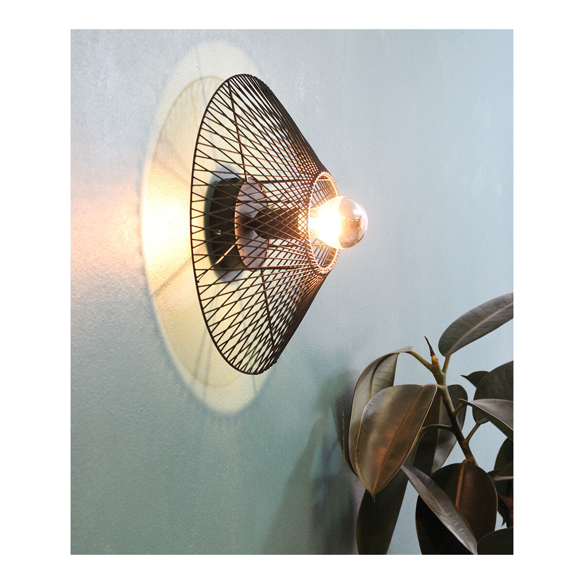 Applique murale noir. Entièrement réalisée en métal, l’applique cohabite aisément avec une décoration contemporaine. Son design particulier produit un jeu d'ombre original sur vos murs. Équipez la d'une ampoule avec un bout opaque pour faire refléter les fines tiges de métal noir mat dans votre intérieur.